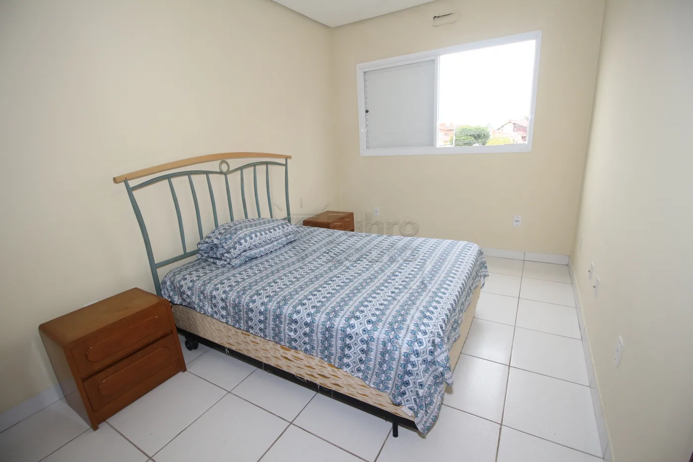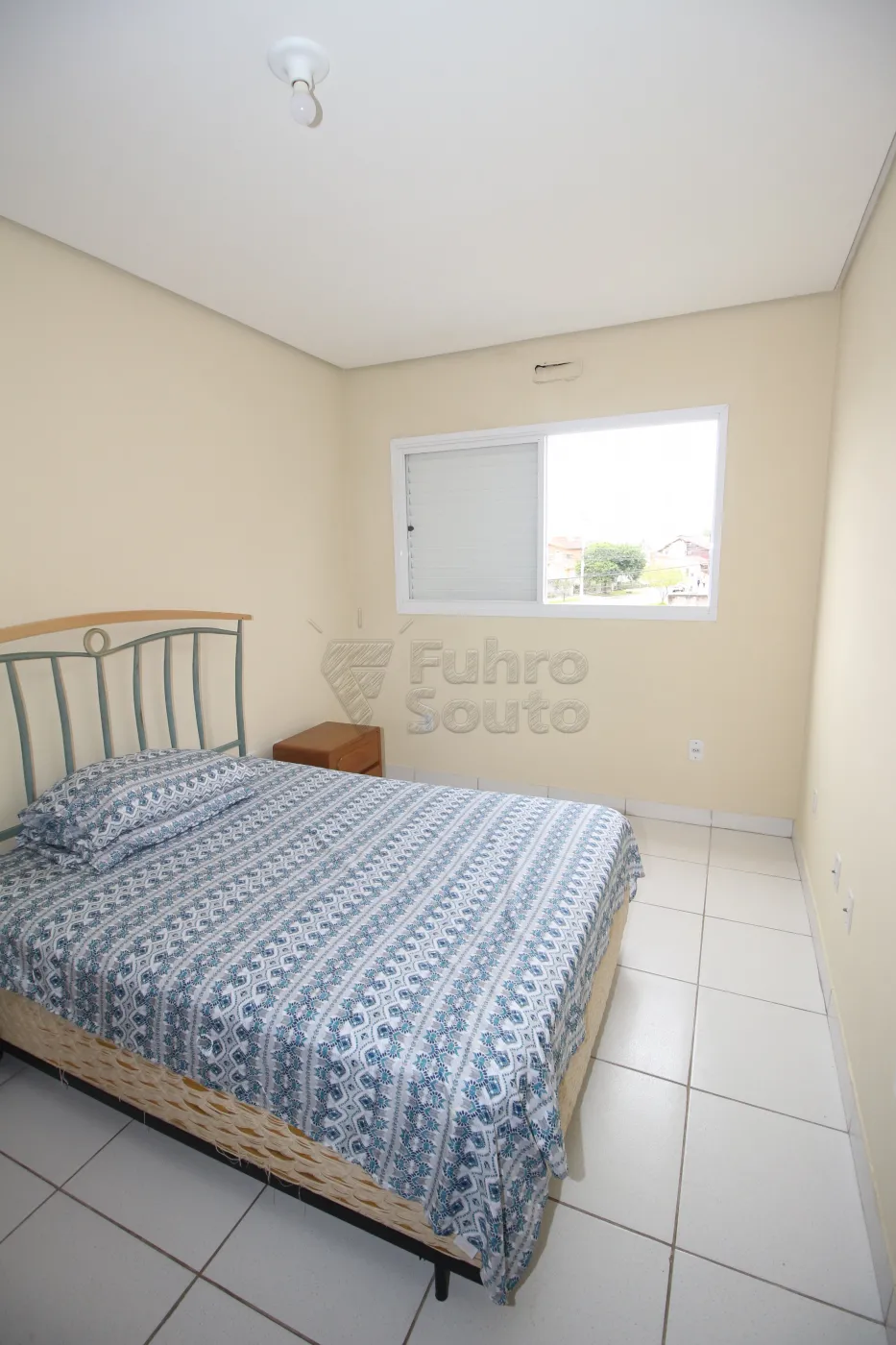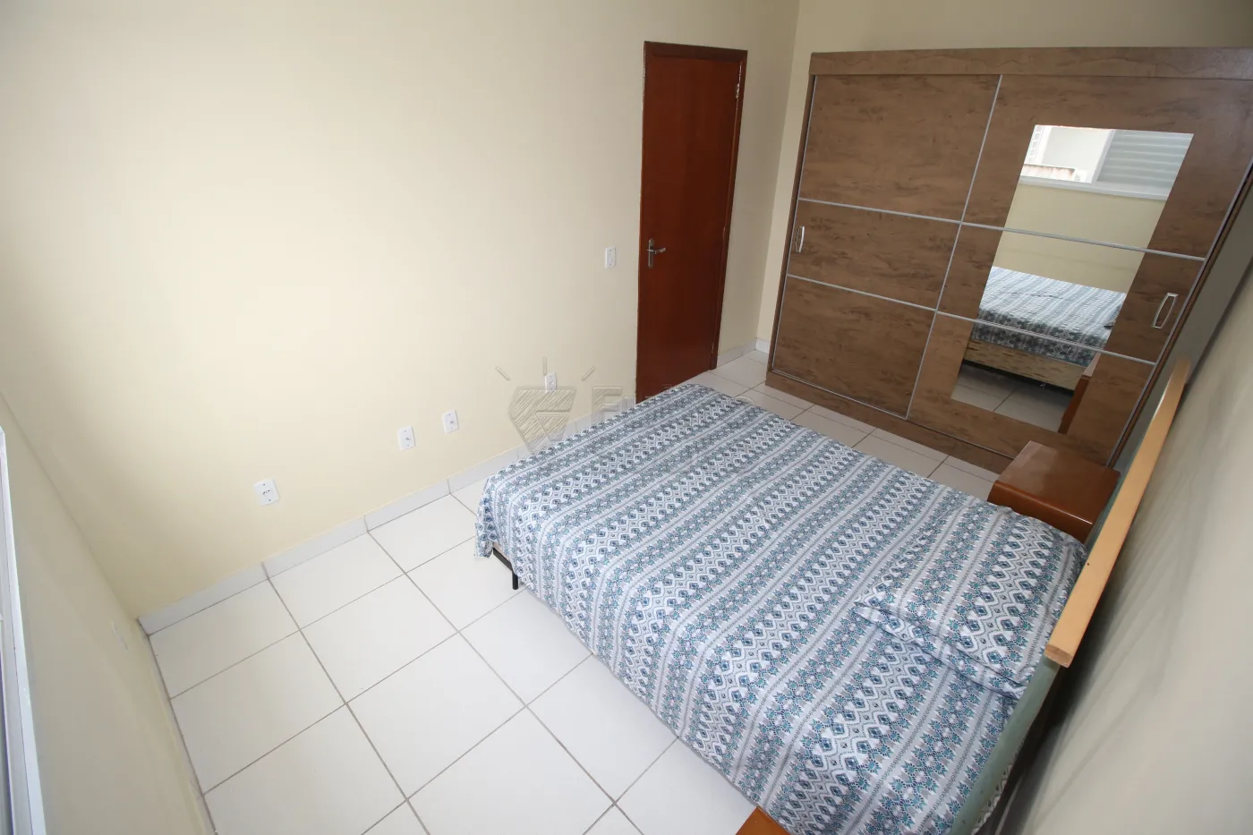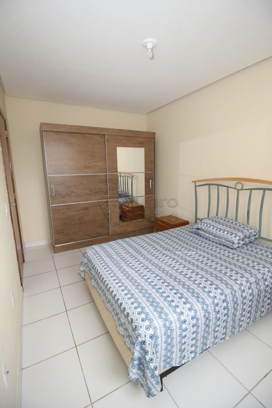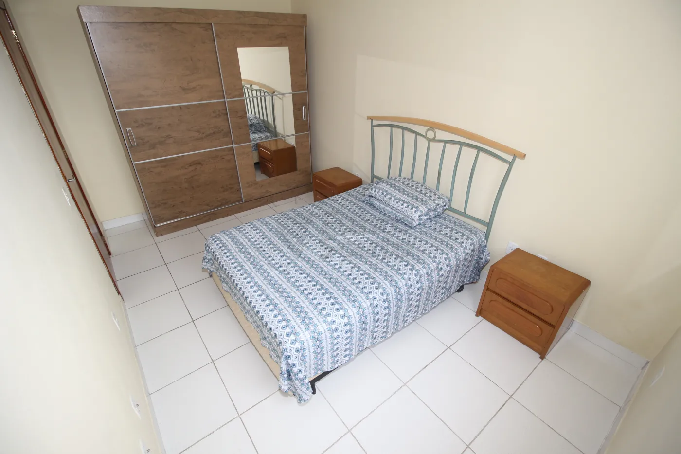 - Quarto Amplo e Iluminado em Piso Frio: O quarto é bem iluminado e vem equipado com cama de casal e guarda-roupa.