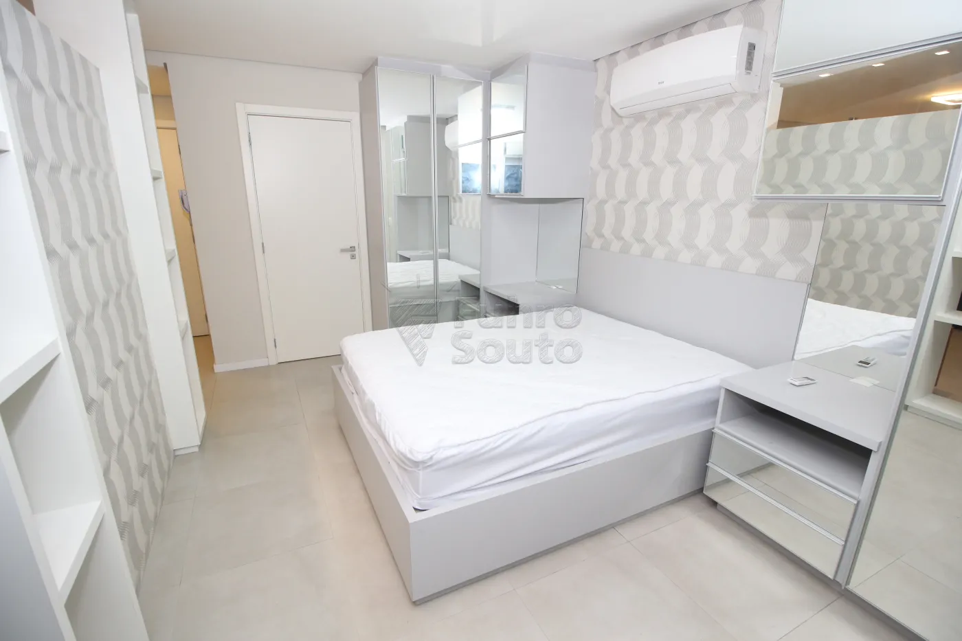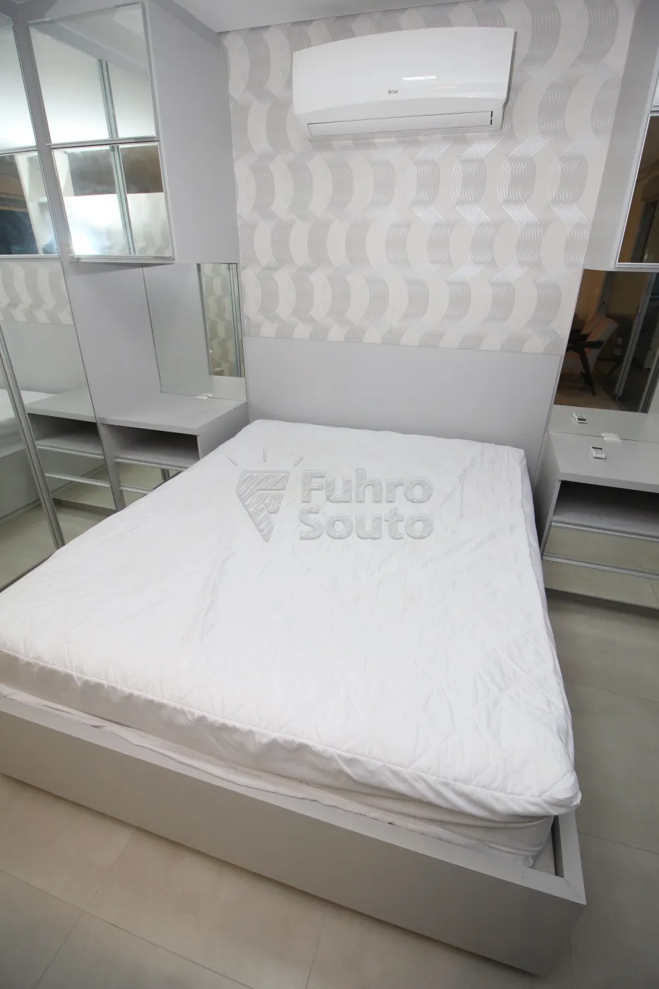 Quarto com Cama Box e Ar-Condicionado: Noites de sono tranquilas e agradáveis, garantindo seu descanso.