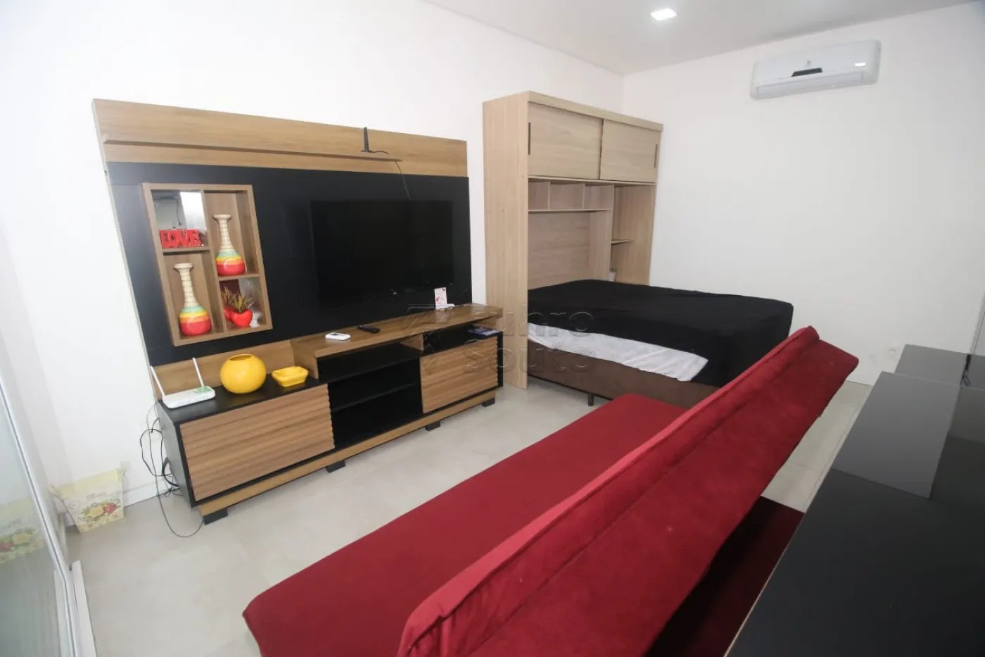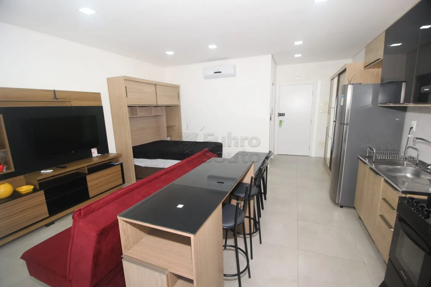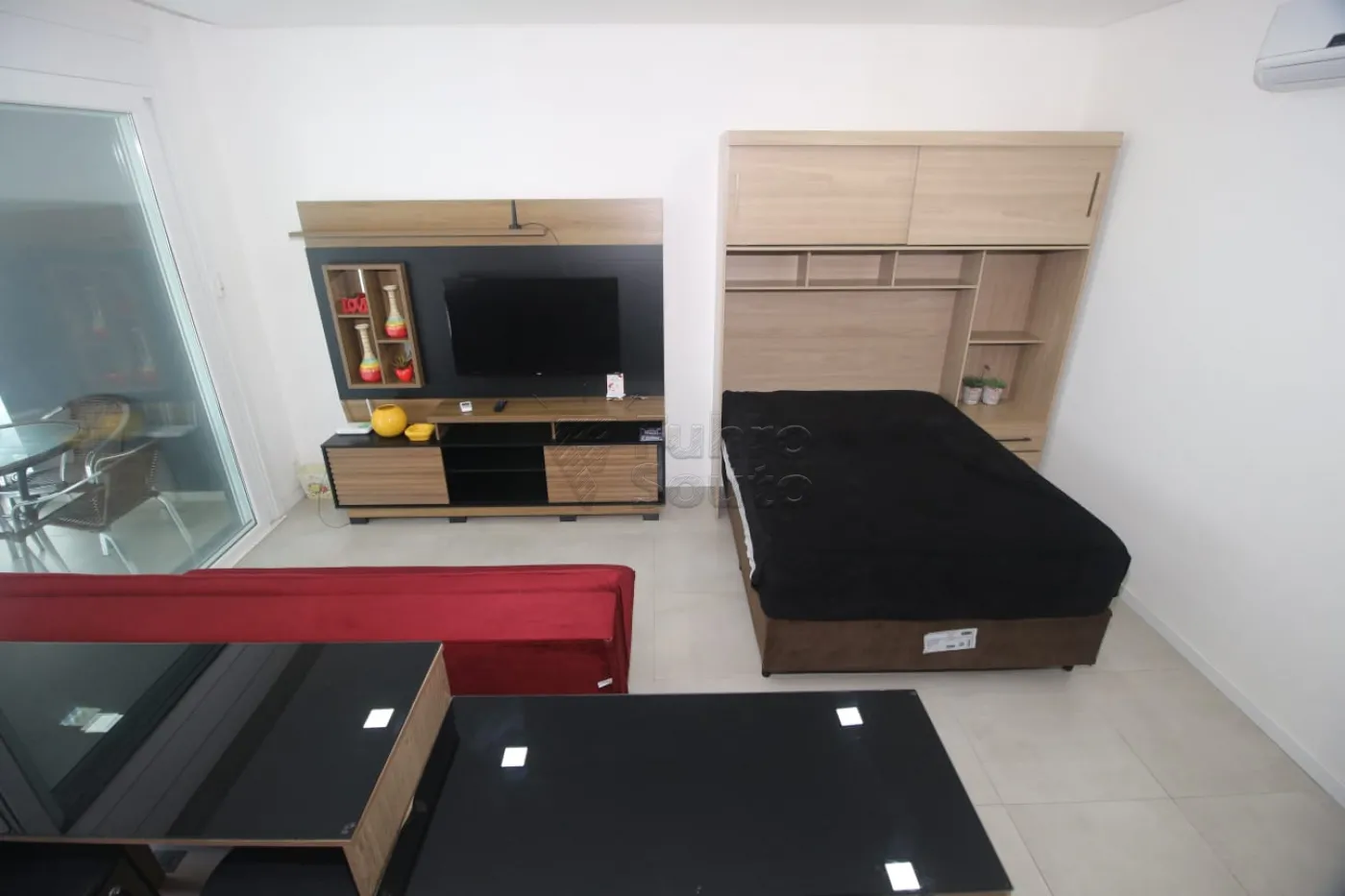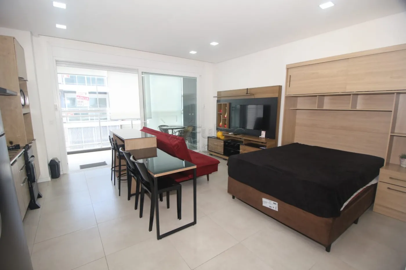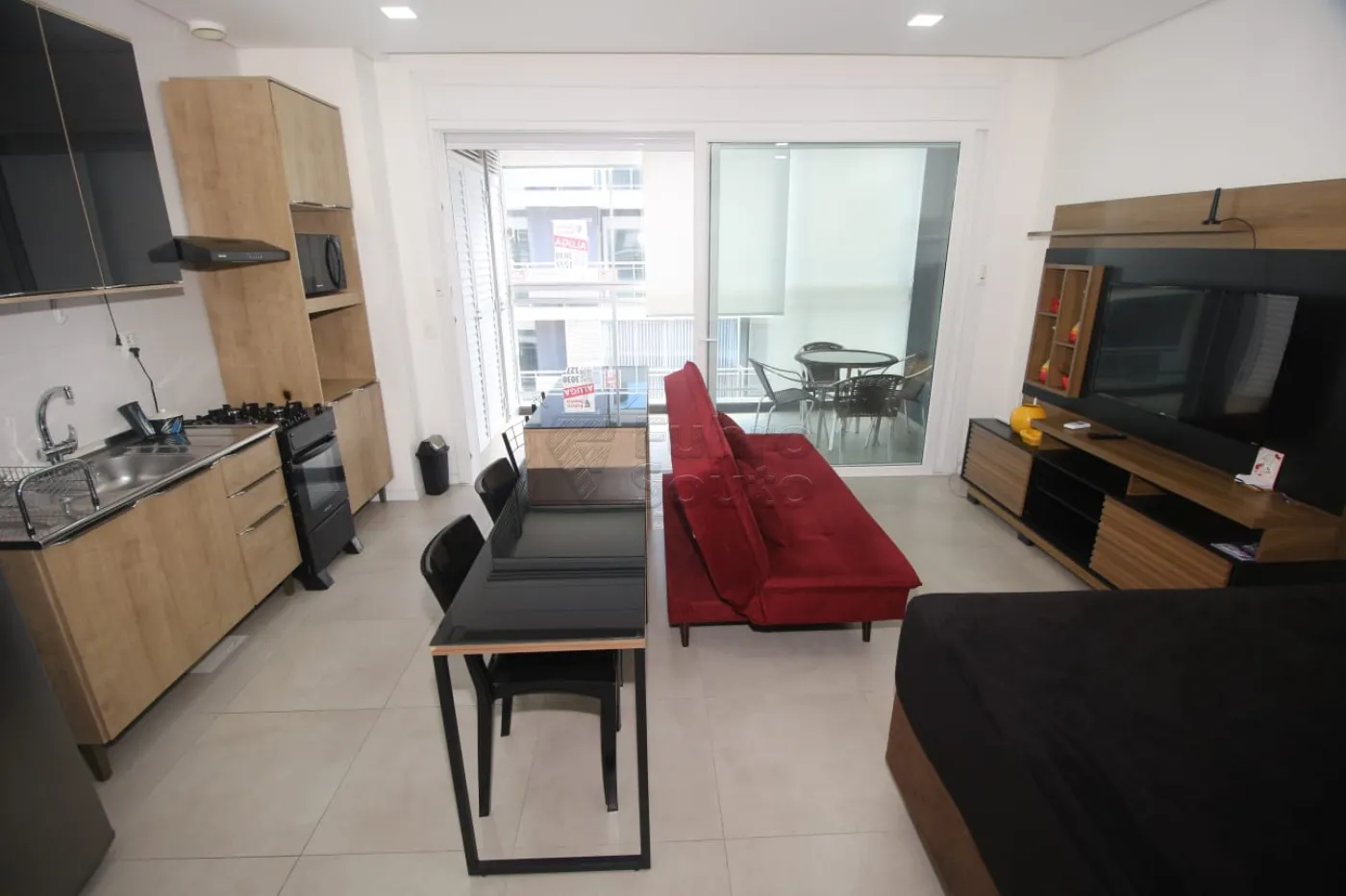 - Ambiente Integrado: Sala, dormitório e cozinha em um espaço planejado e funcional, ideal para otimizar o dia a dia.