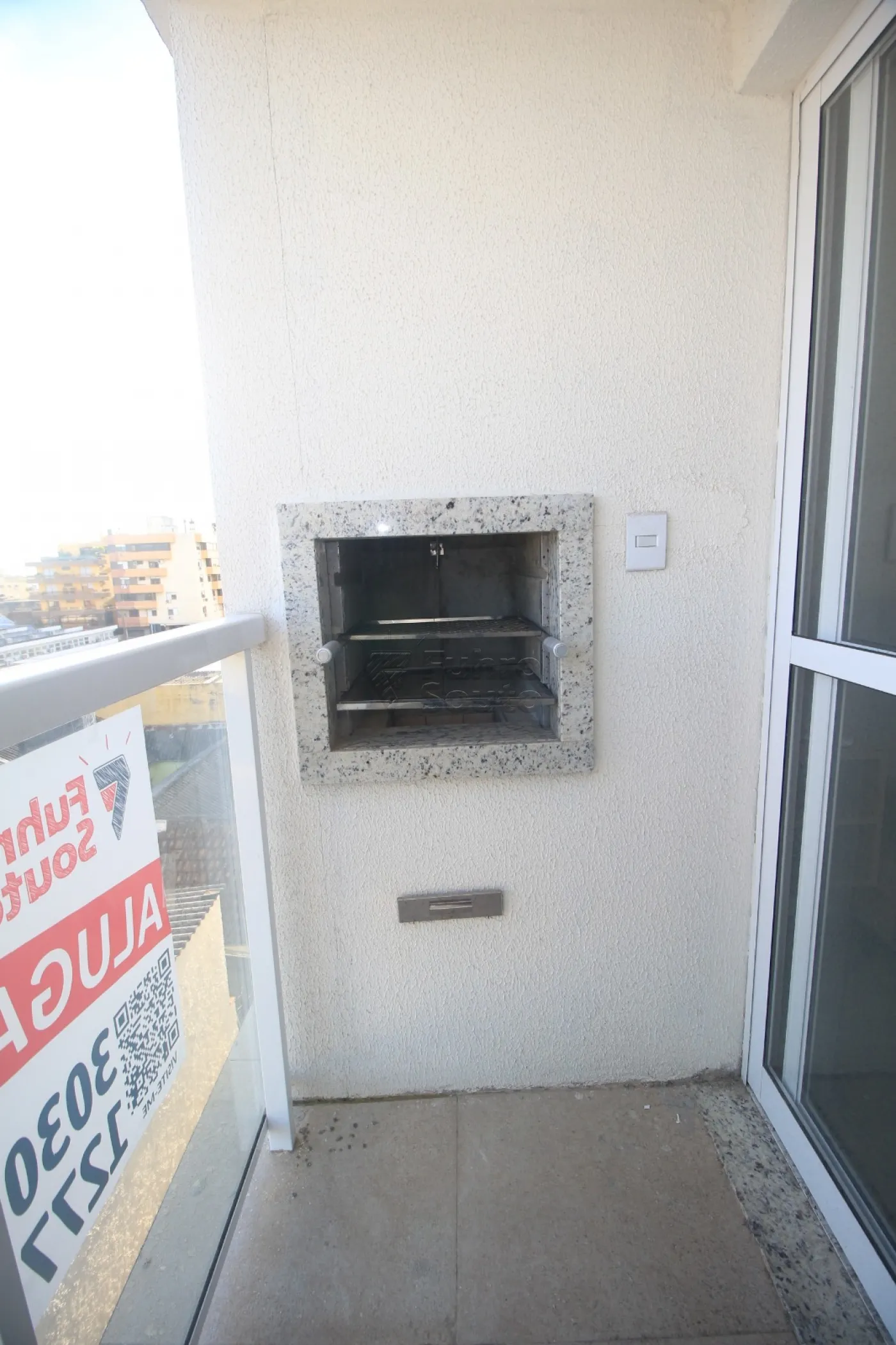 Sacada com churrasqueira, ideal para aproveitar bons momentos ao ar livre.