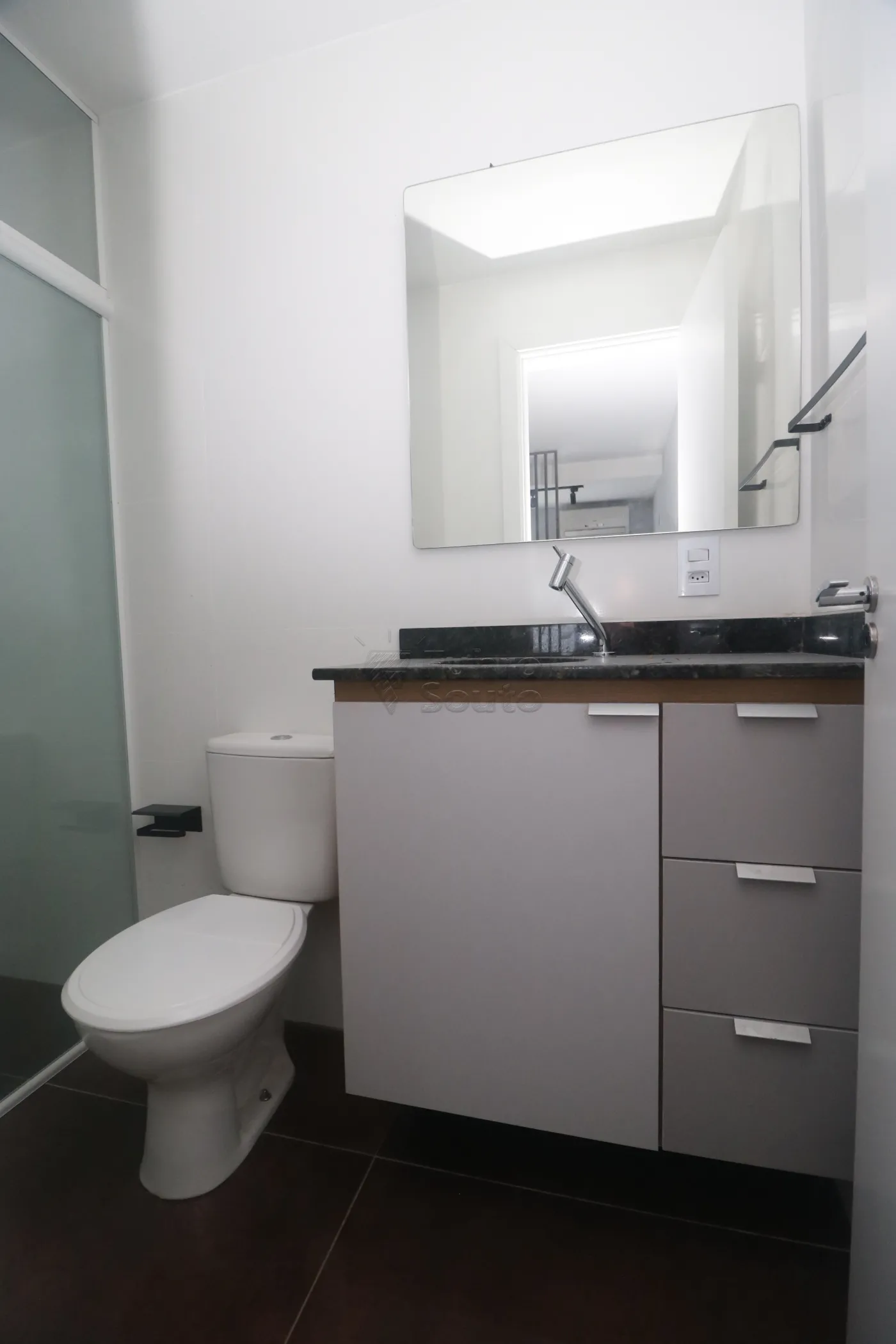 Banheiro: banheiro completo, com armário e box de vidro, bem distribuído e funcional.