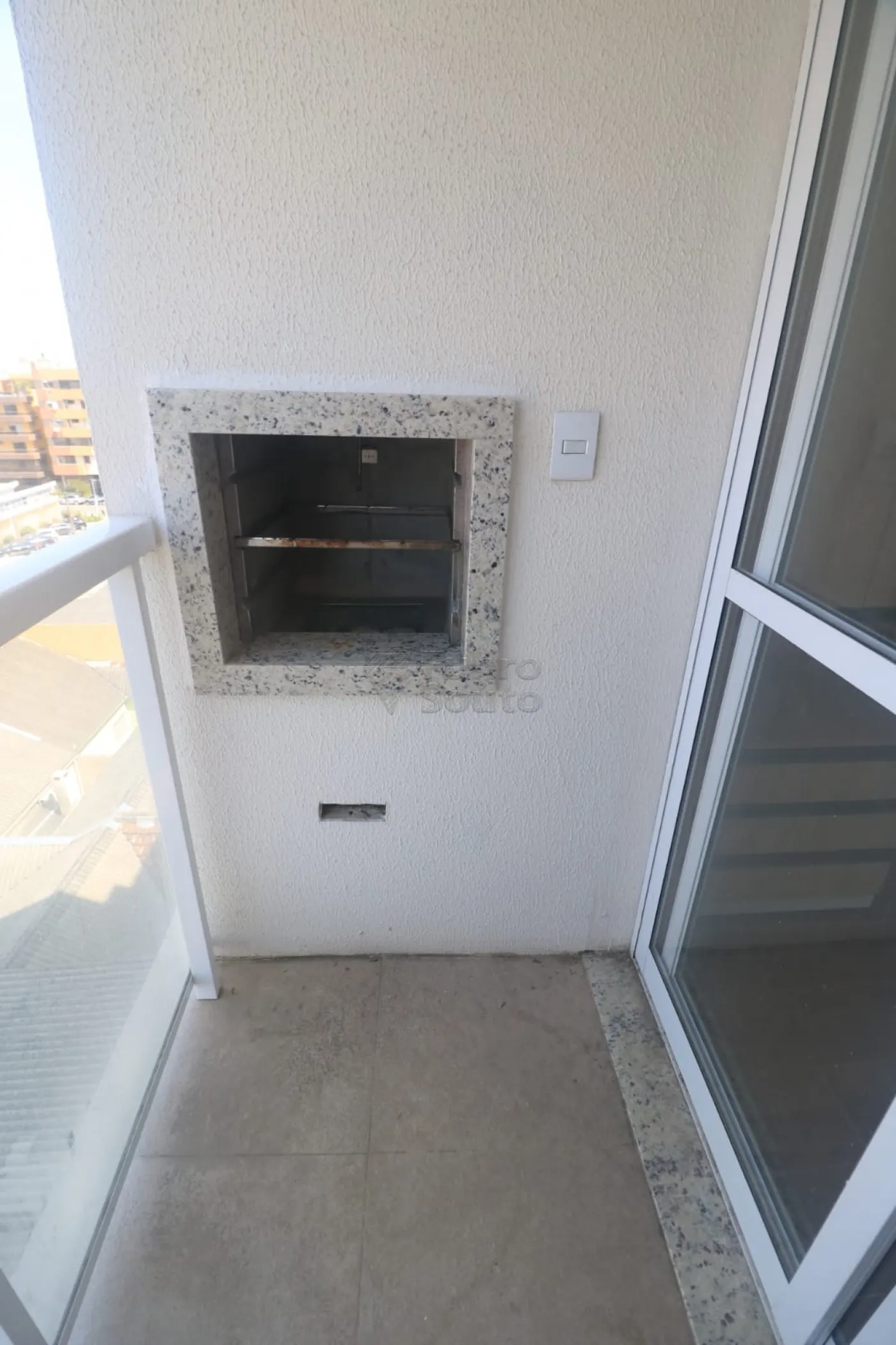 Sacada com churrasqueira, proporcionando um ambiente agradável para momentos de lazer.