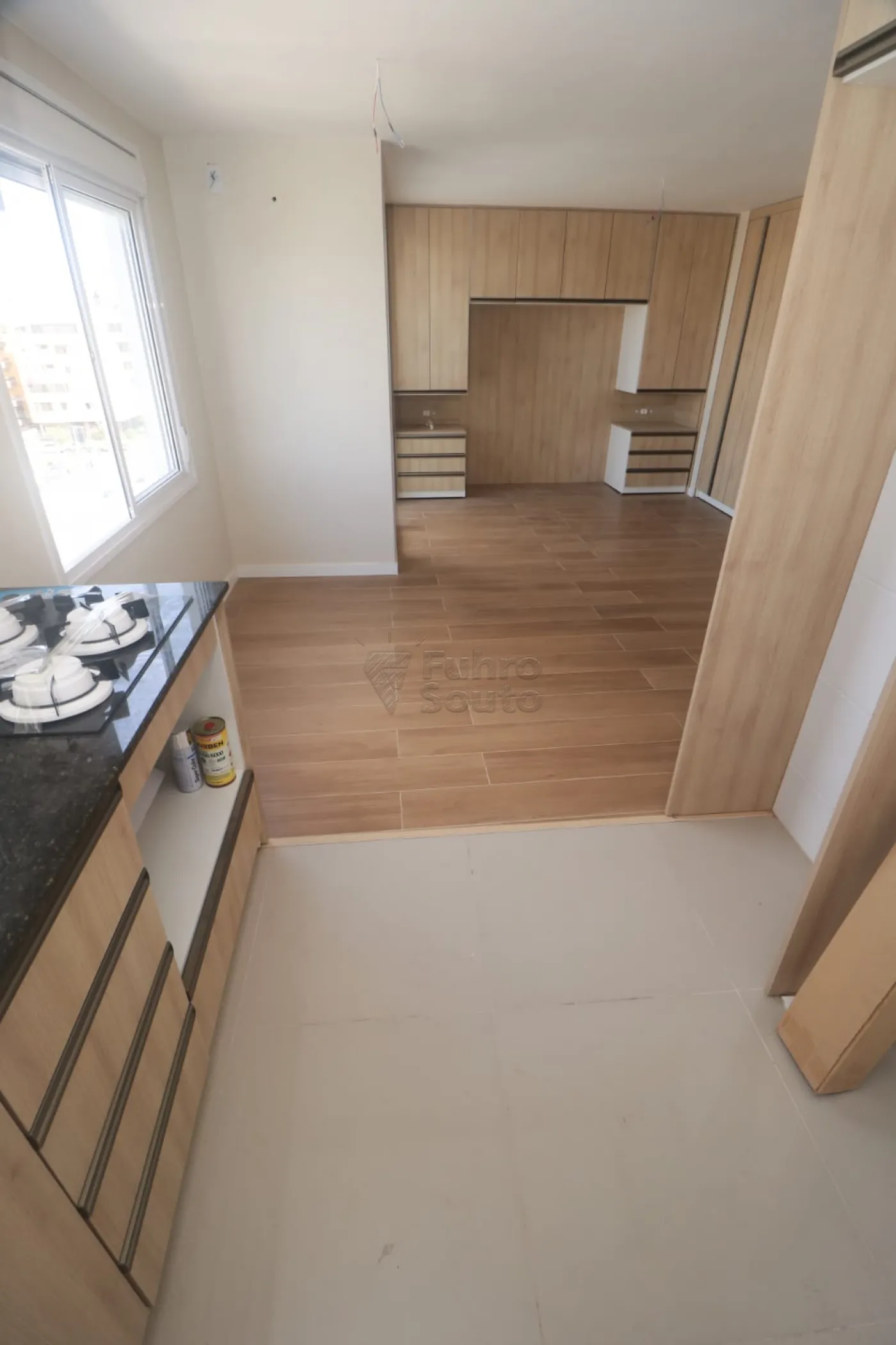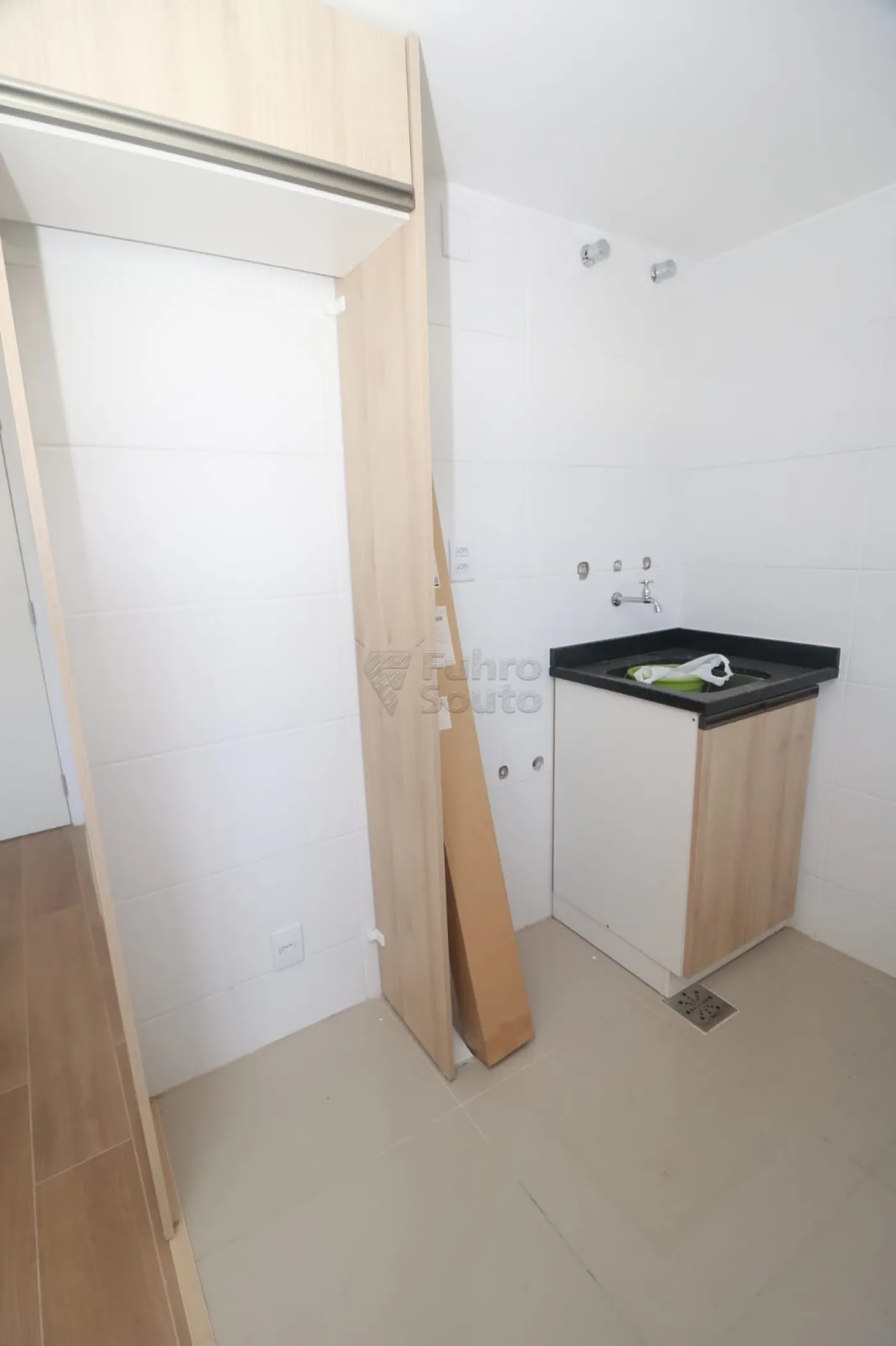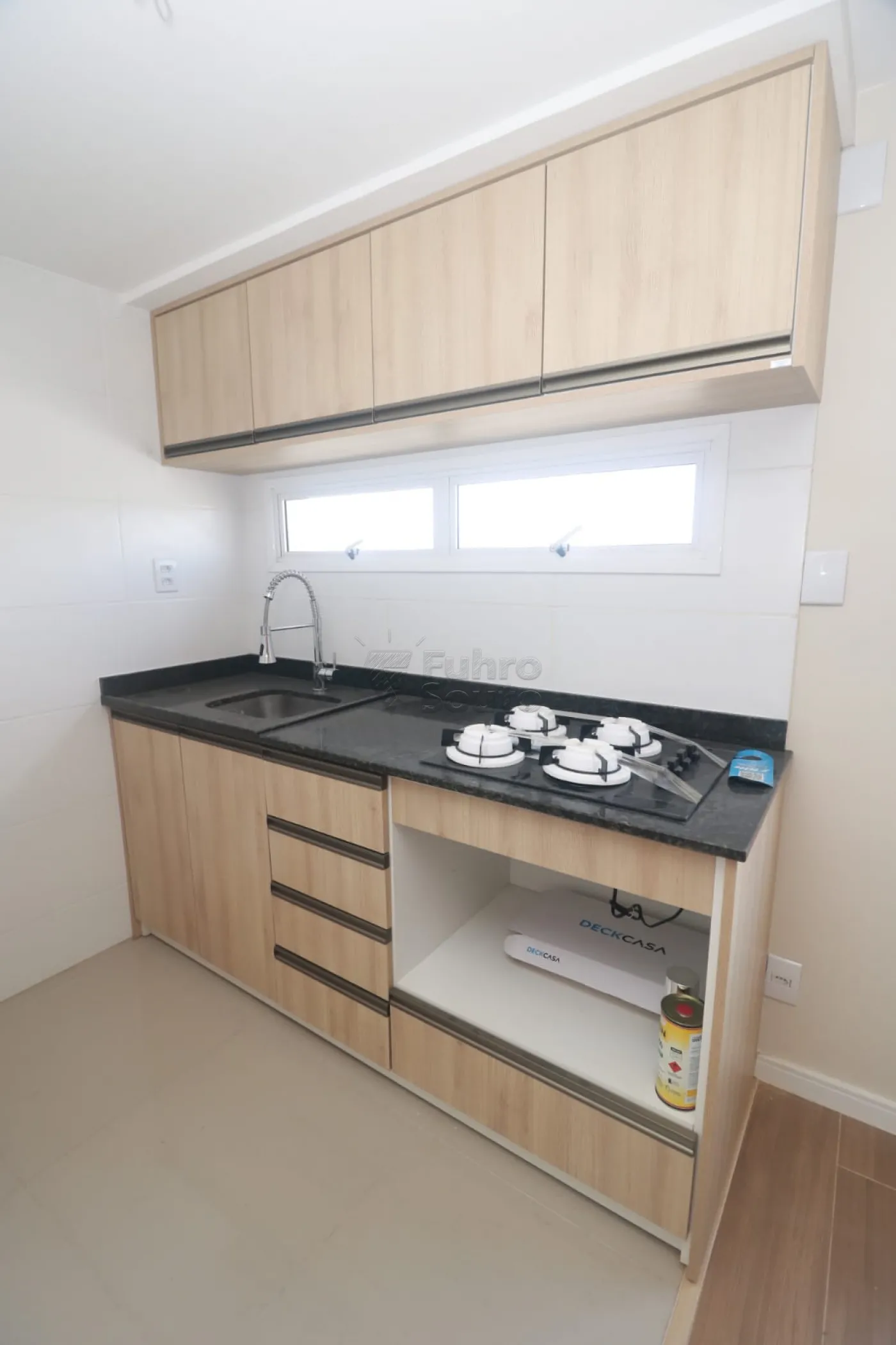 Cozinha funcional com armários planejados, equipada com fogão cooktop, pia e tanque, garantindo praticidade no dia a dia.