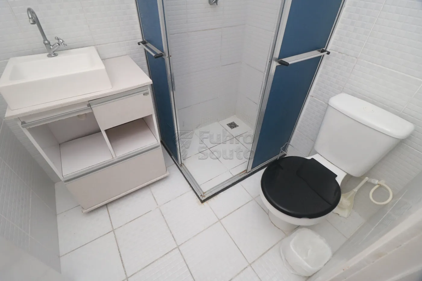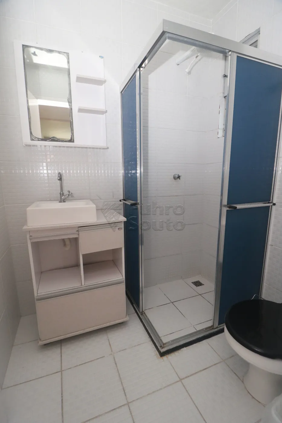 Banheiro - com box de acrílico, armário com cuba e espelho