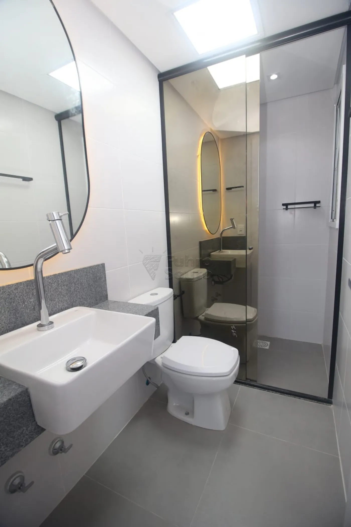- 2 Banheiros Modernos: Ambos equipados com box de vidro e espelhos com iluminação LED.