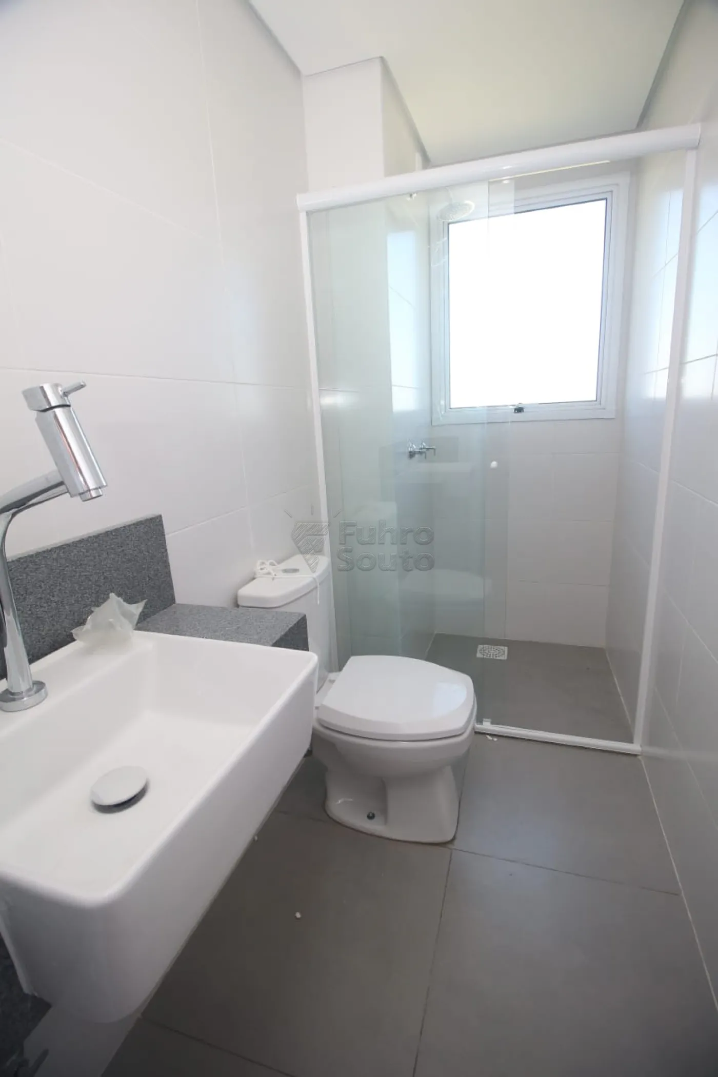 Banheiro moderno, bem distribuído e de fácil manutenção