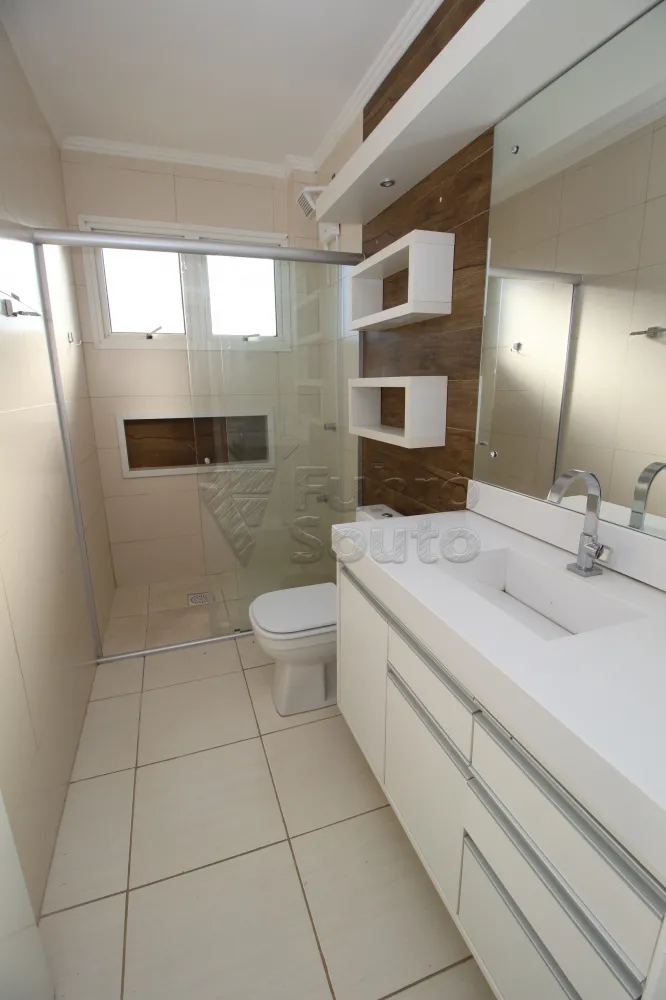 O banheiro conta com um moderno box de vidro, proporcionando um espaço reservado para o seu cuidado pessoal. Você poderá desfrutar de banhos relaxantes em um ambiente moderno e funcional.