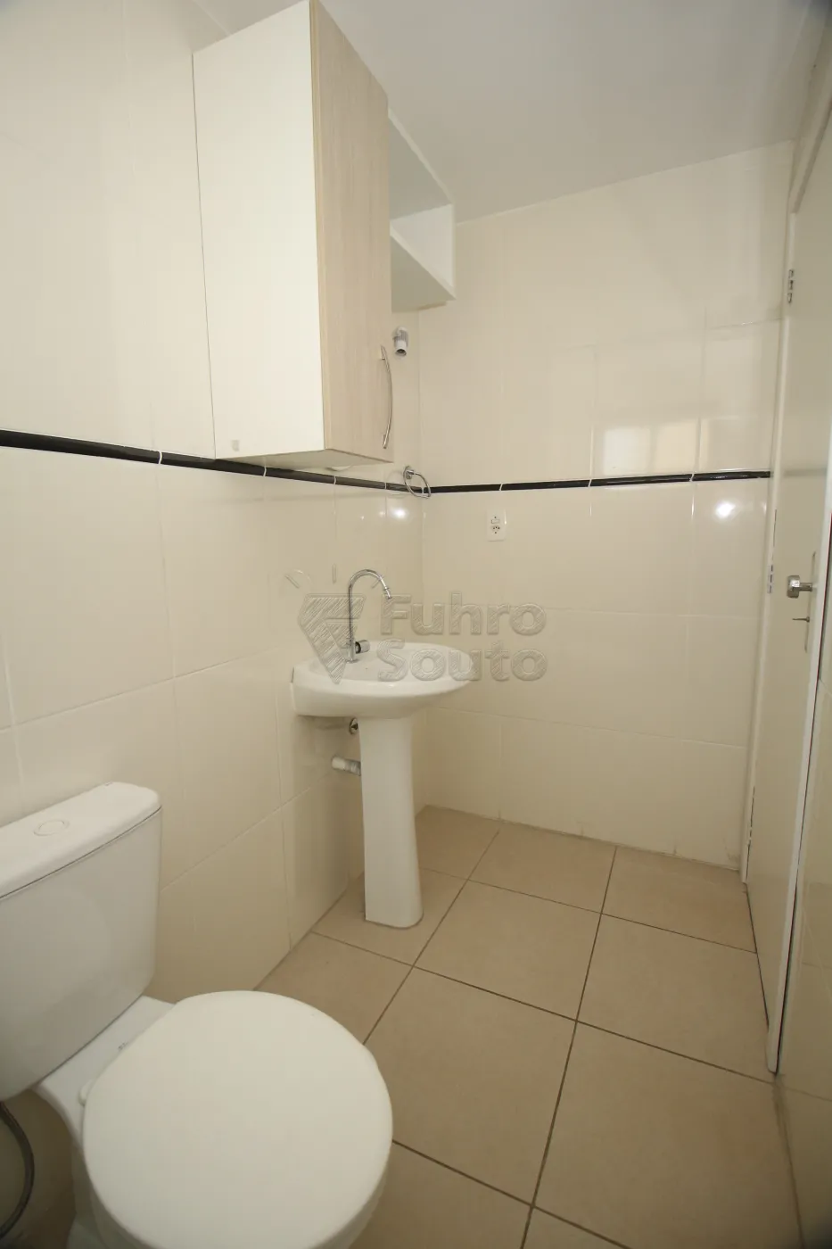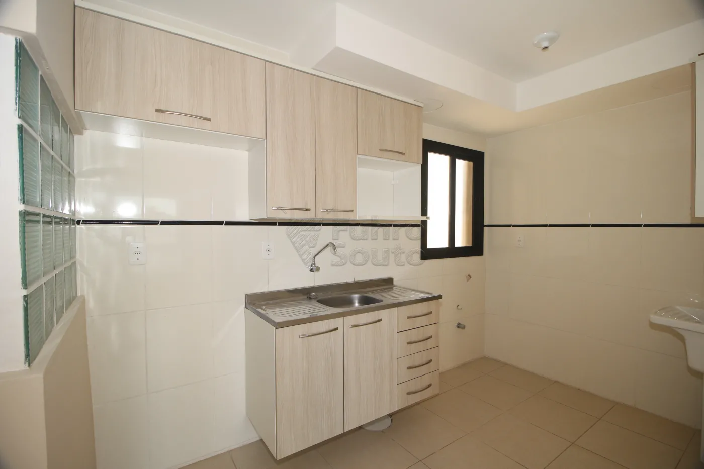 - Cozinha Integrada: A cozinha, também em piso frio, vem equipada com balcão de pia e armários, integrada à sala, o que otimiza o espaço e facilita o dia a dia.