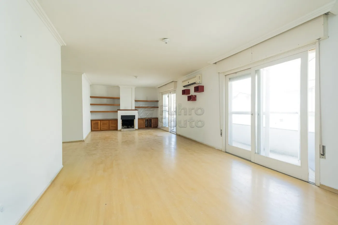 Sala de estar ampla e bem iluminada, com excelente espaço para dois ambientes (estar e jantar), equipada com lareira que traz conforto térmico e um toque acolhedor ao ambiente. Possui acesso direto à sacada, proporcionando ventilação natural e ótima luminosidade.