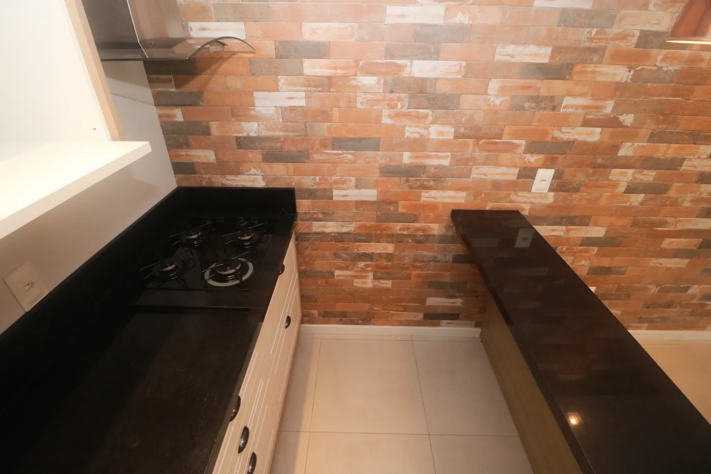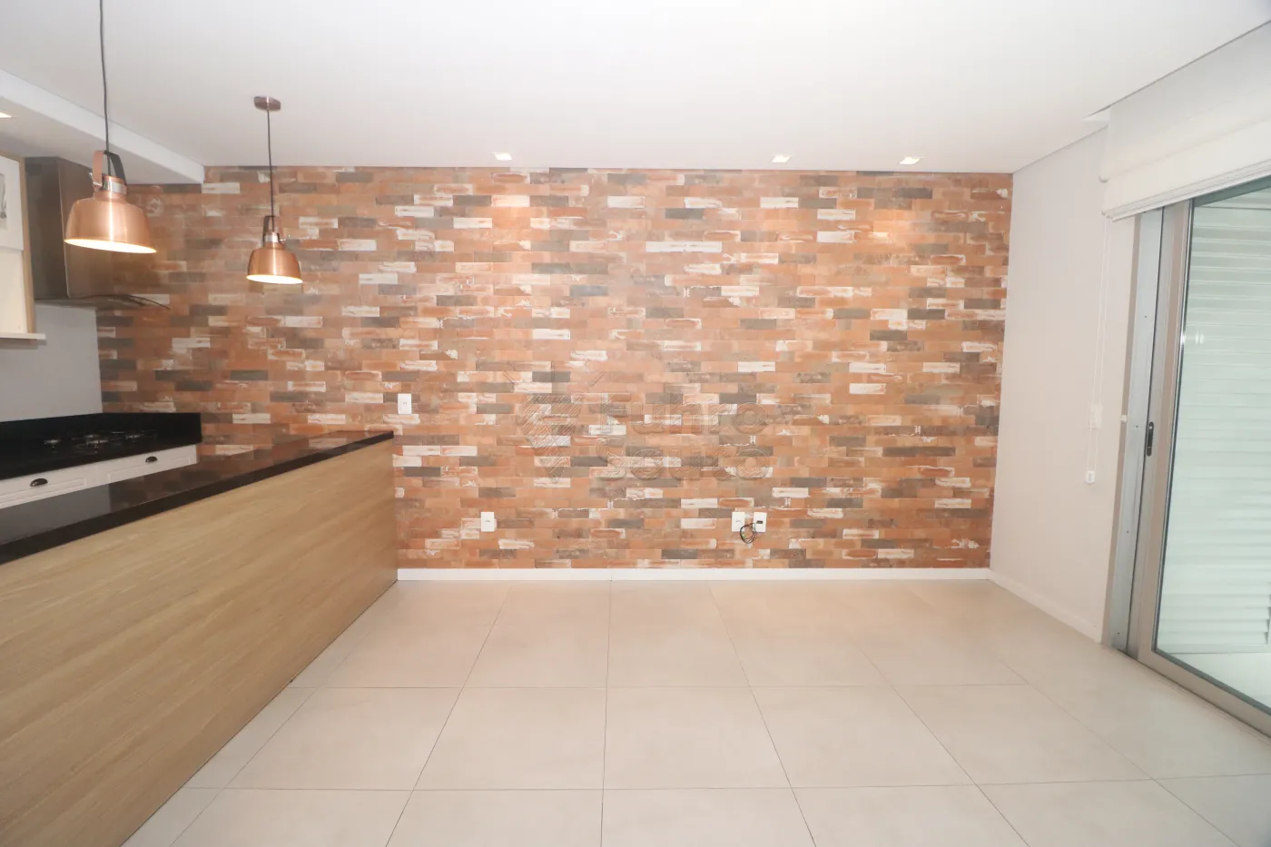 Parede com revestimento decorativo estilo tijolinho, trazendo personalidade e sofisticação ao espaço.