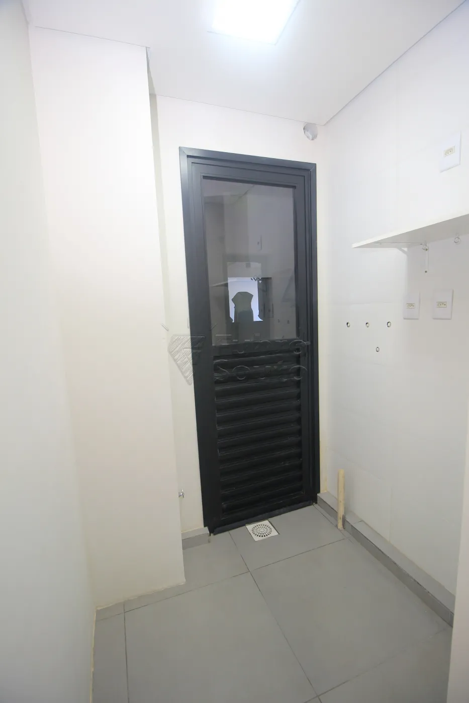 Lavanderia com prateleira suspensa.