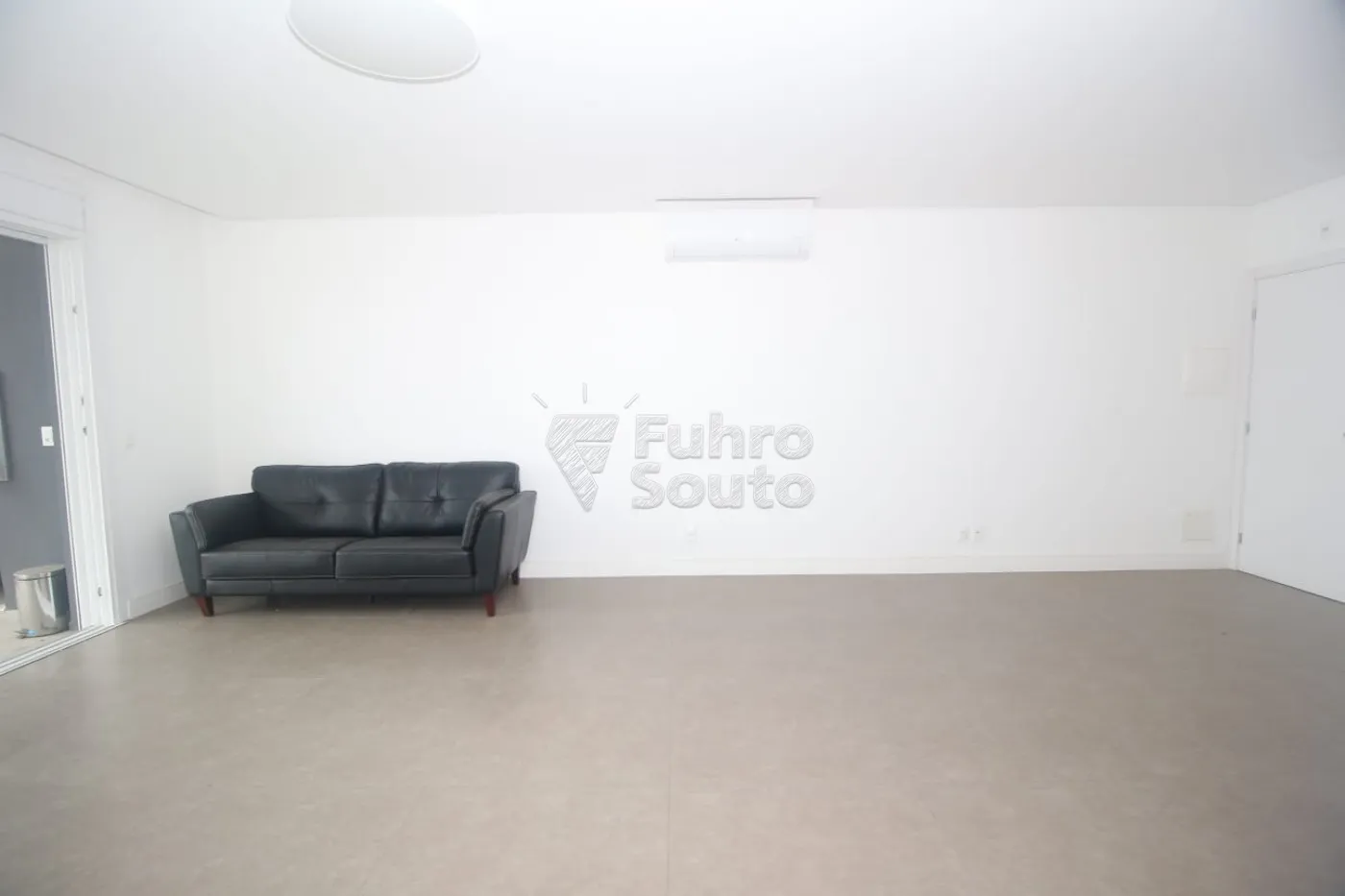 Sala e cozinha em conceito aberto: Integração moderna e prática, com sofá e ar-condicionado já instalados.