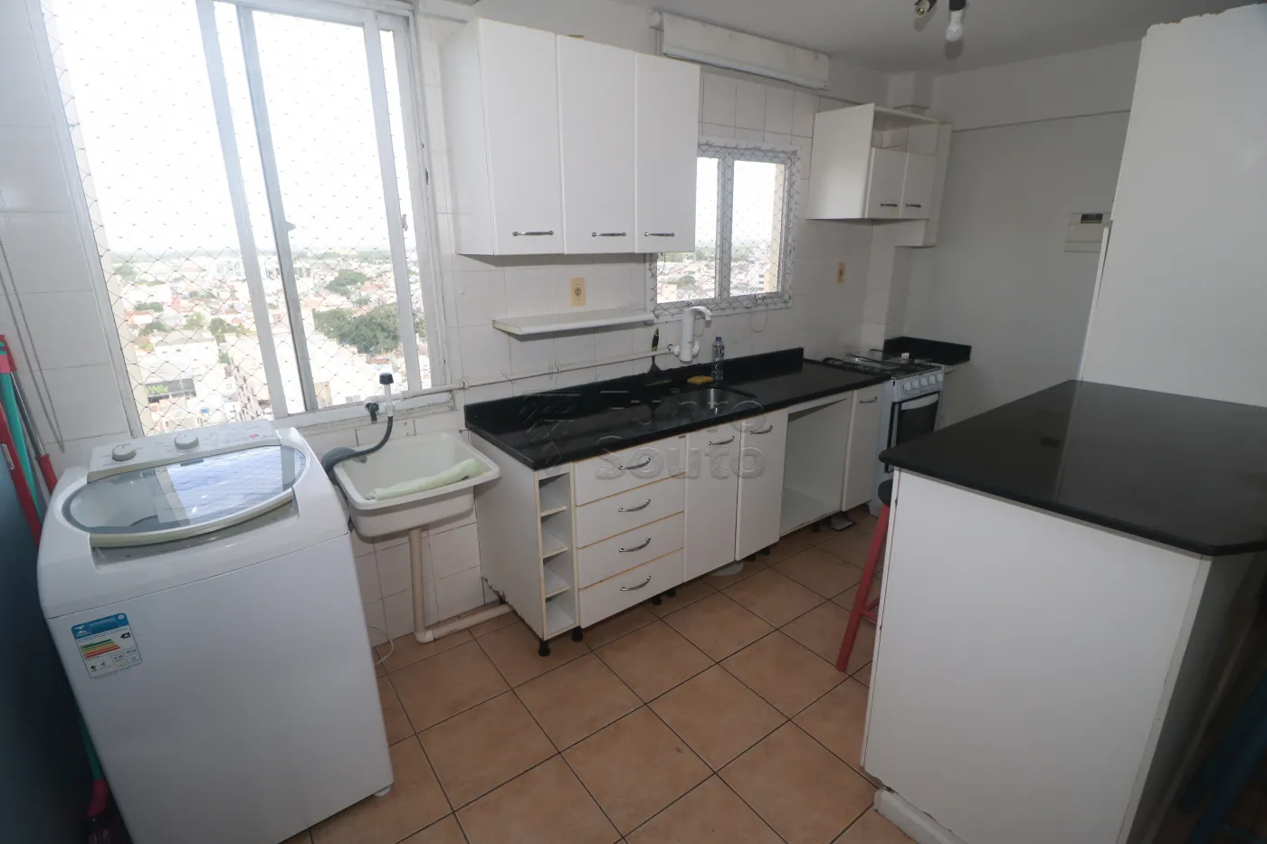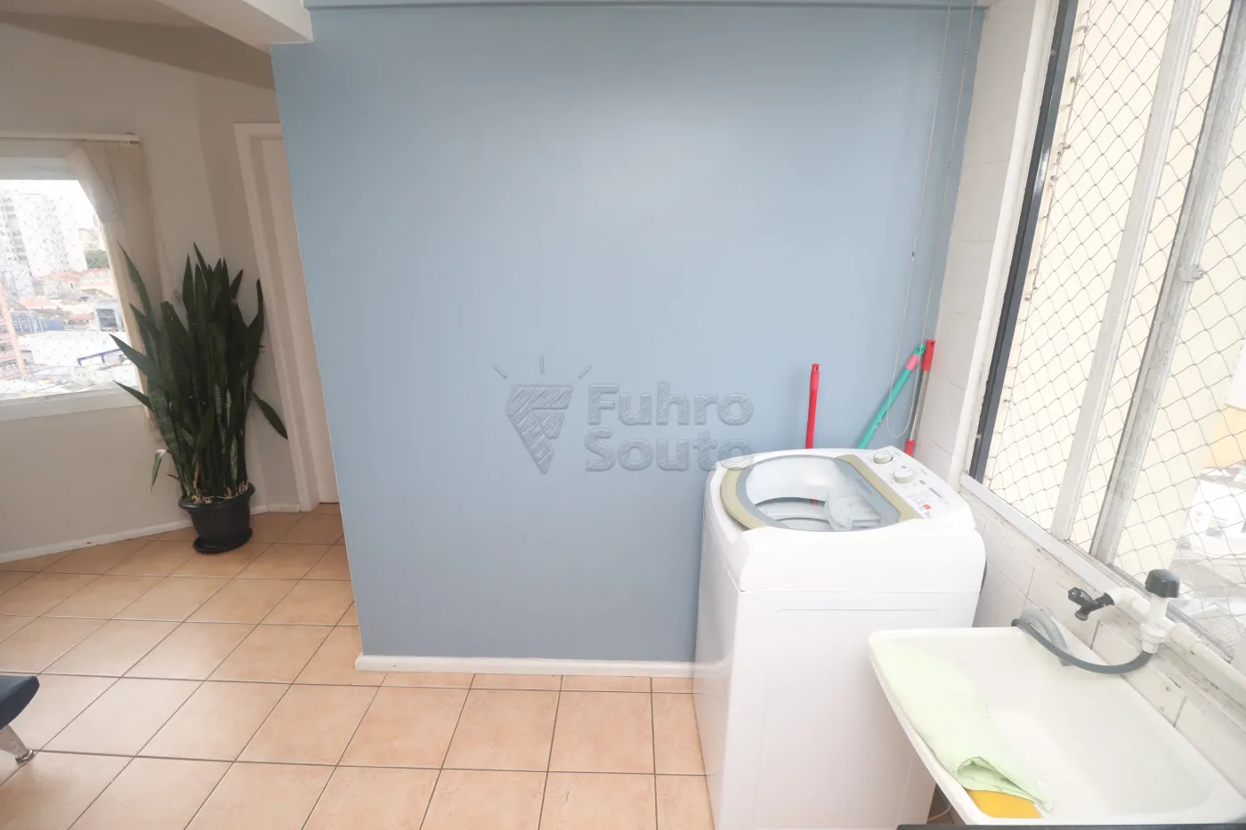 Área de serviço integrada, com máquina de lavar.