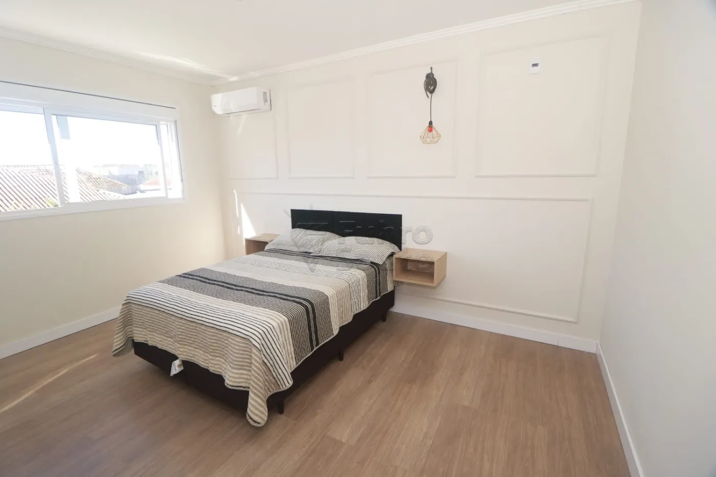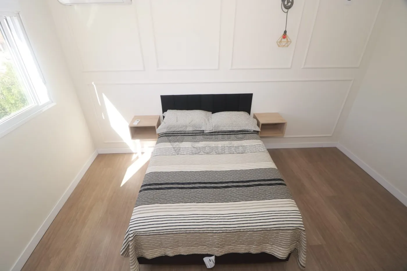 A suíte tem cama casal box, colchão de molas e ar condicionado, ambientes confortáveis e bem decorados.