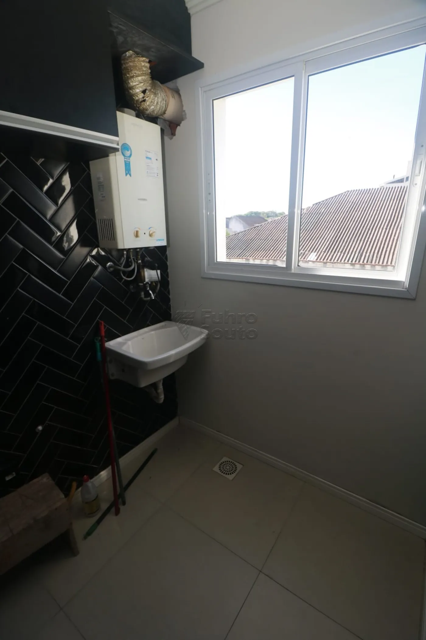 Área de serviço com tanque e entrada para instalação de maquina de lavar.