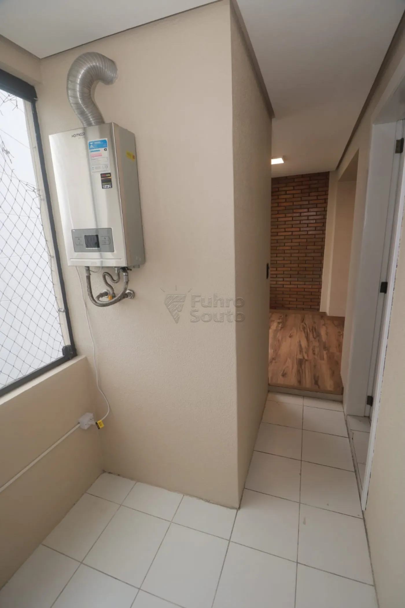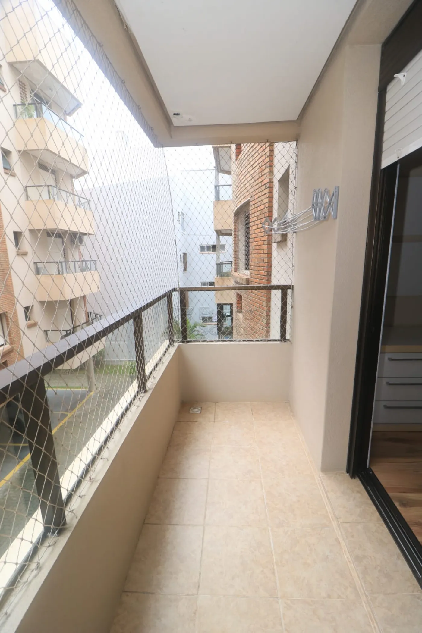 Sacada com Churrasqueira: Ideal para momentos de lazer, com tela de proteção.