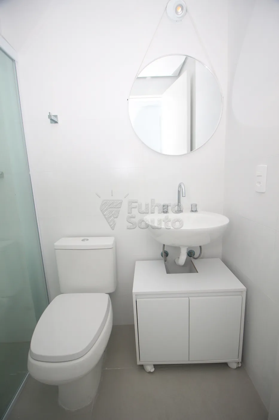 Banheiro social: Com box de vidro e acabamento moderno.