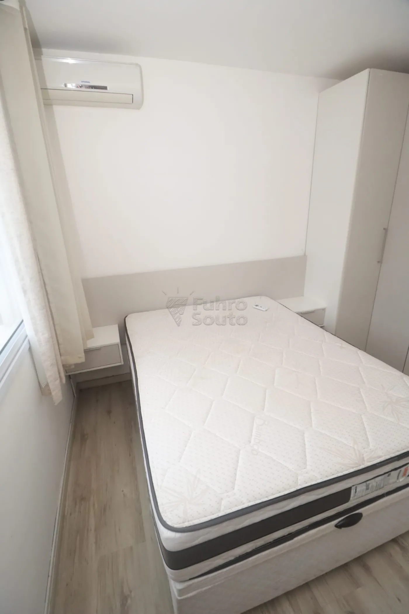 - Dormitórios: dois dormitórios, sendo o principal equipado com cama box de casal, roupeiro planejado, painel de TV planejado e ar-condicionado, oferecendo conforto e excelente aproveitamento de espaço.