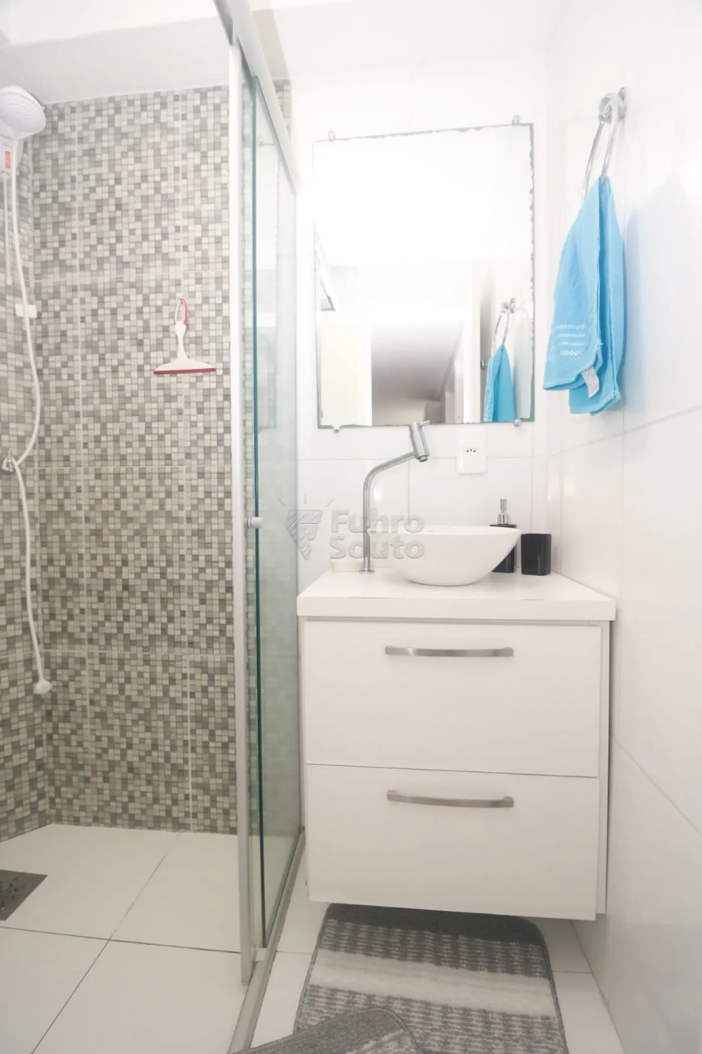 Box de vidro, armário planejado e acabamentos modernos