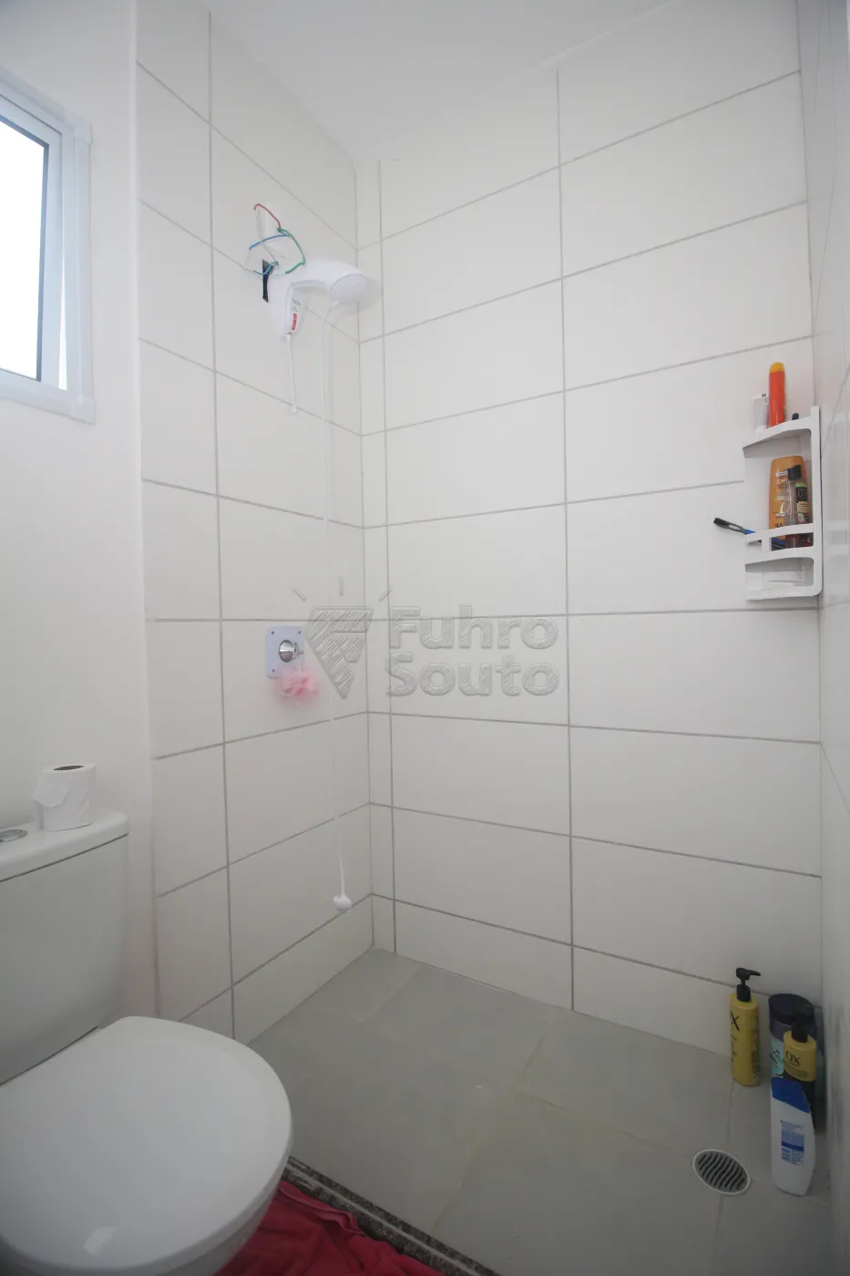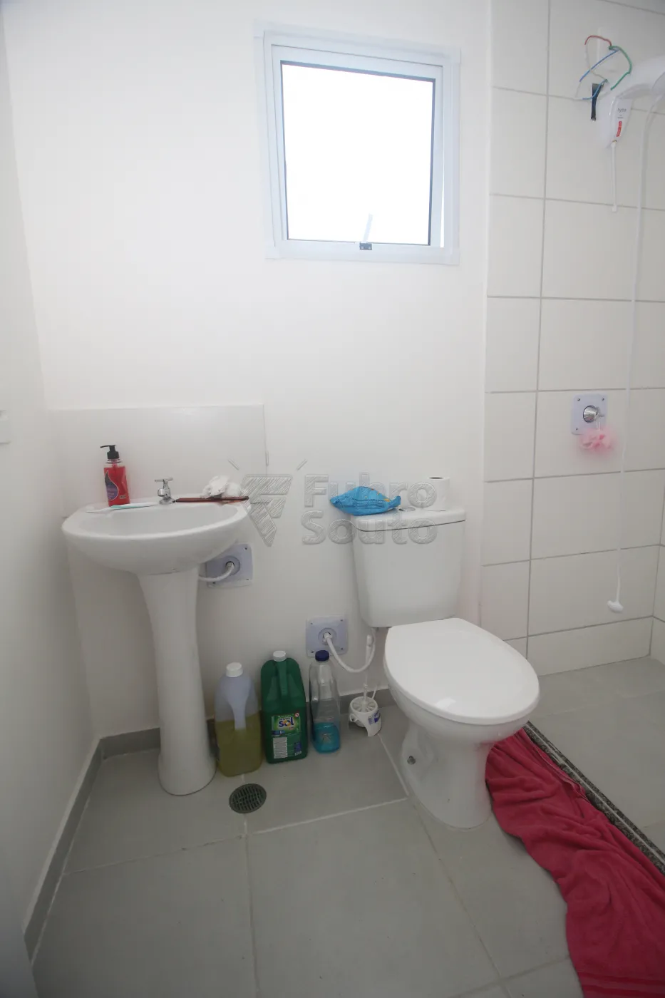 Banheiro prático e bem distribuído.