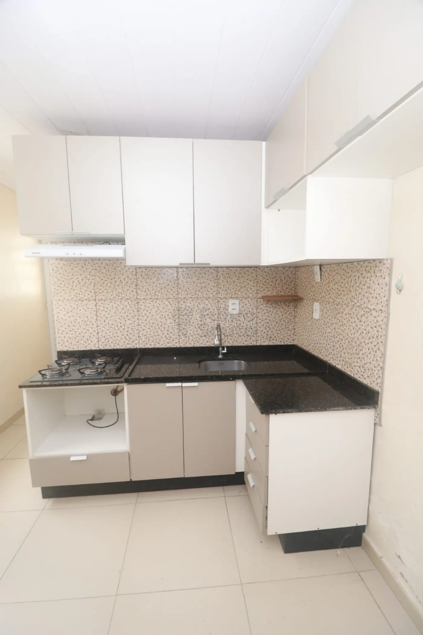 Cozinha com armários já instalados.