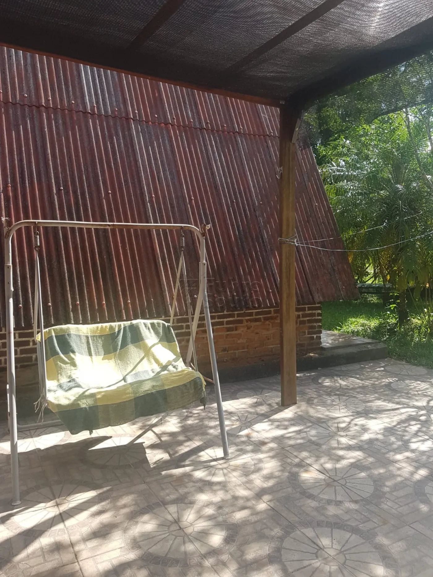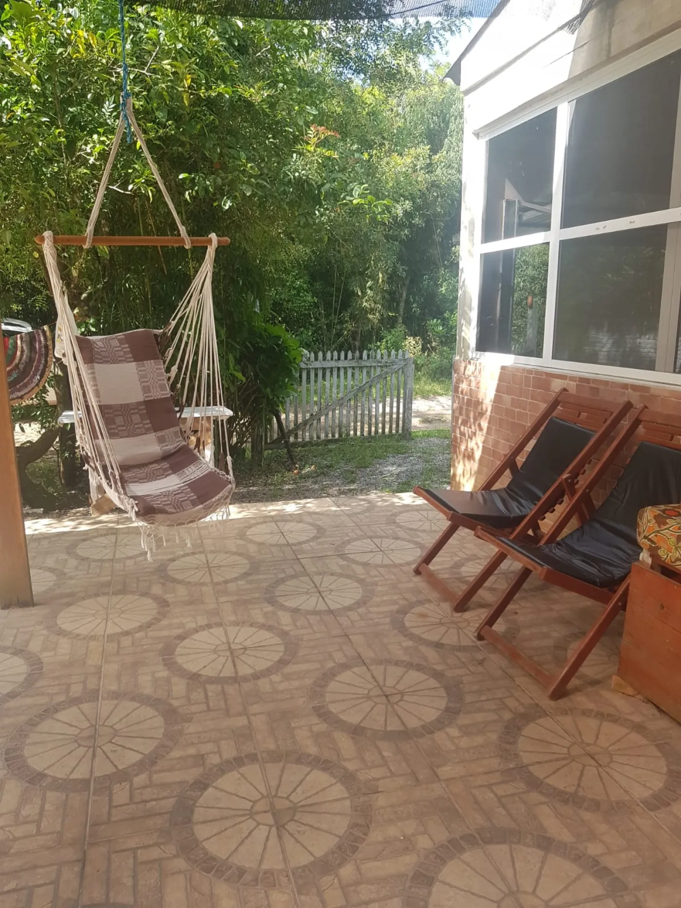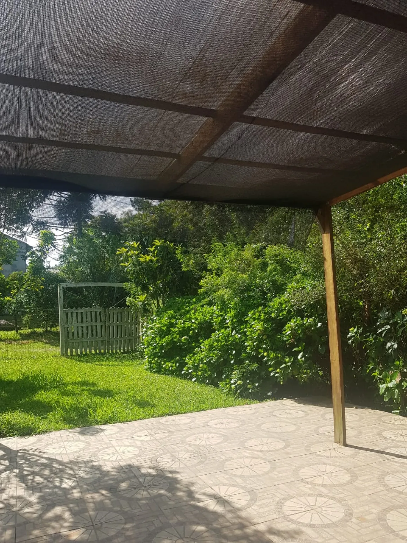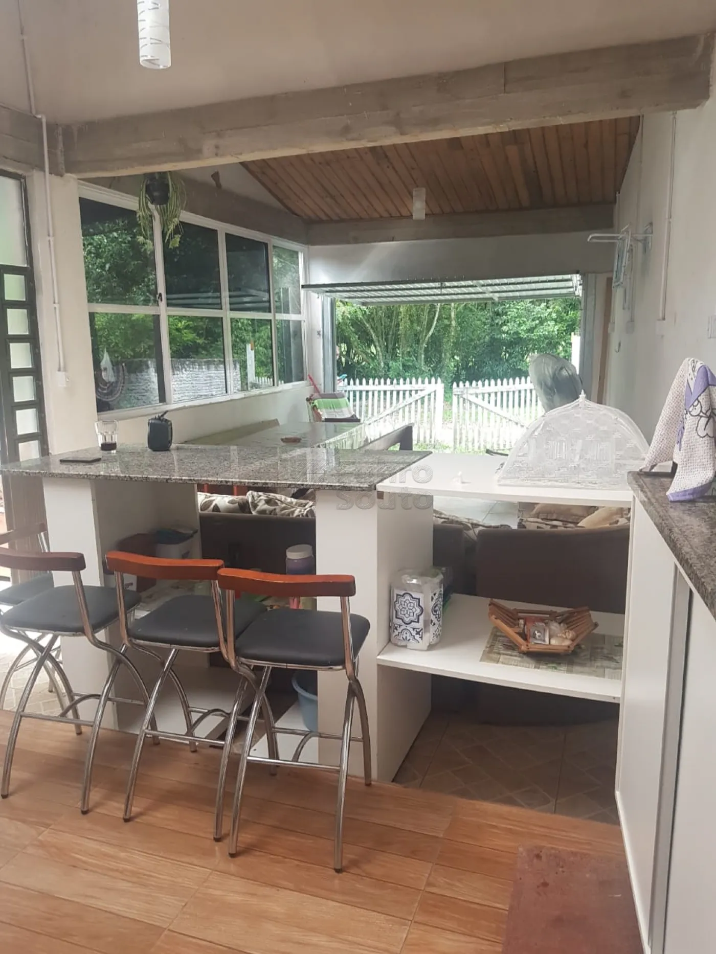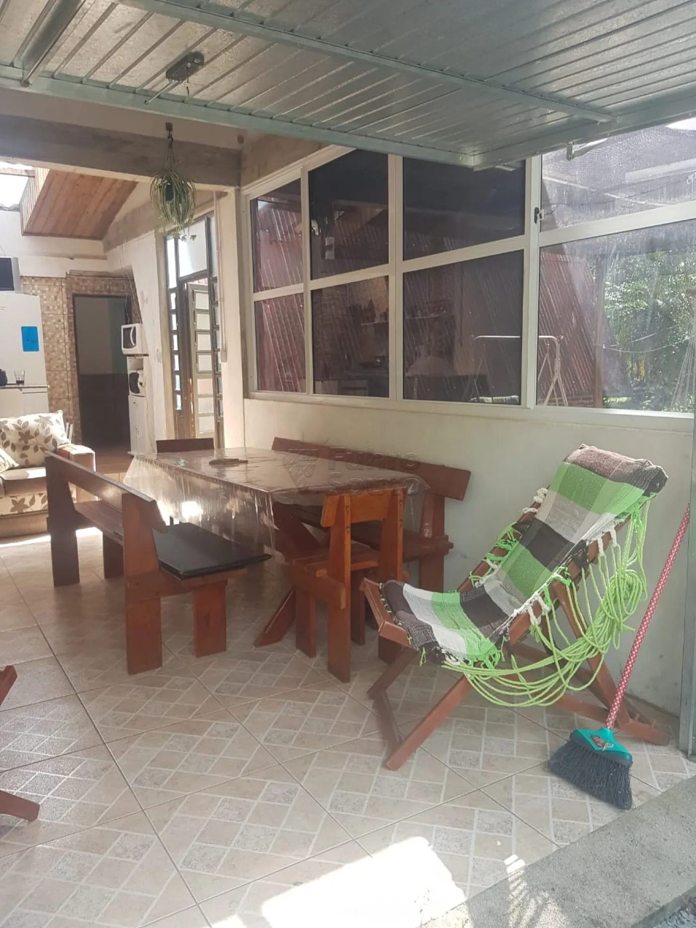 Varanda coberta para refeições externas.