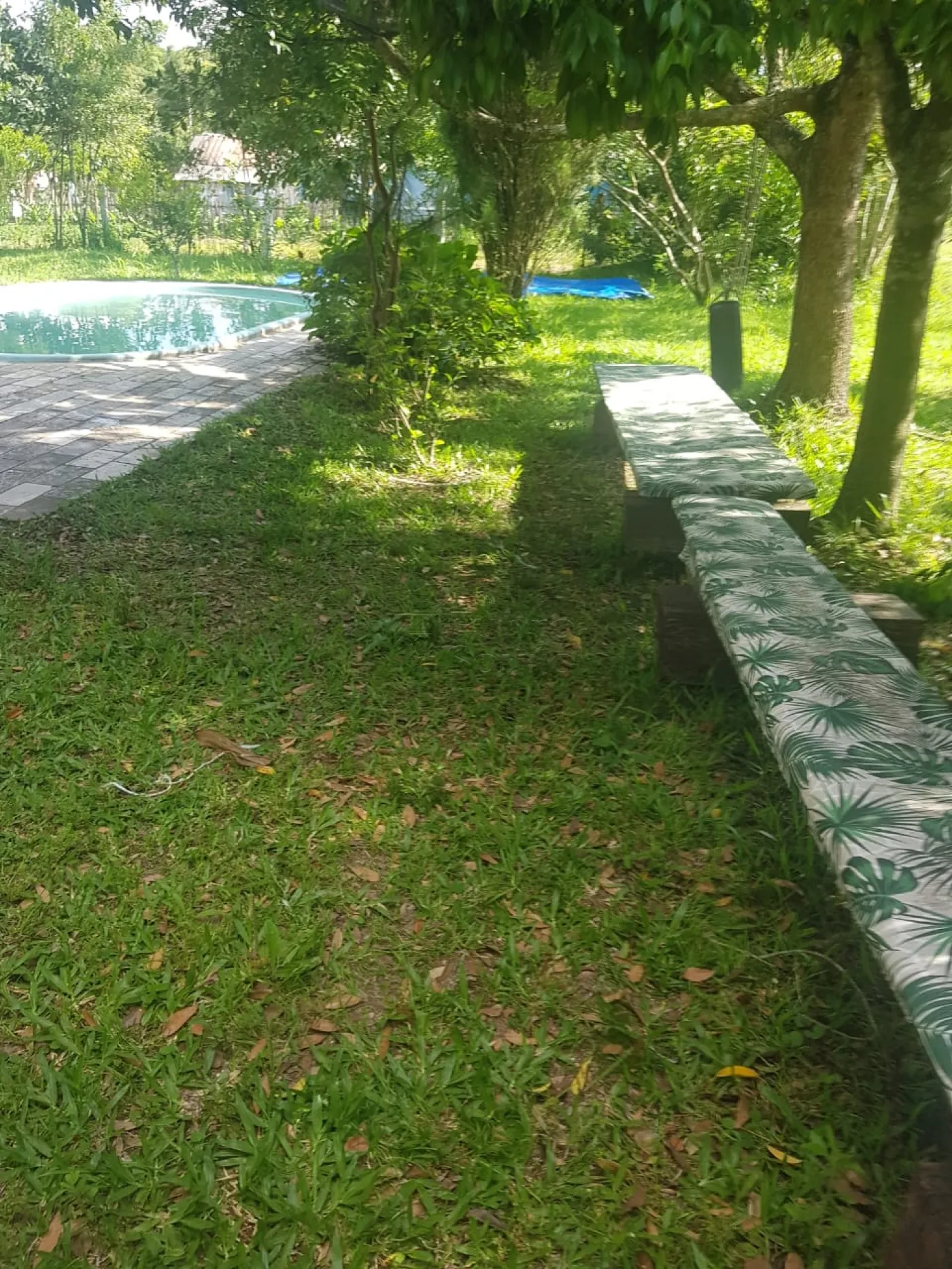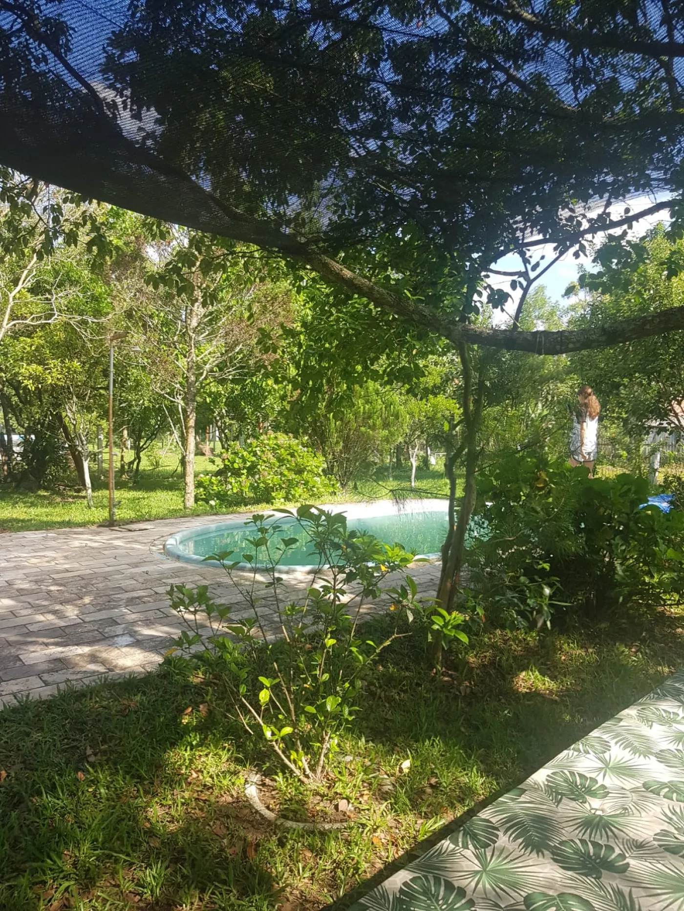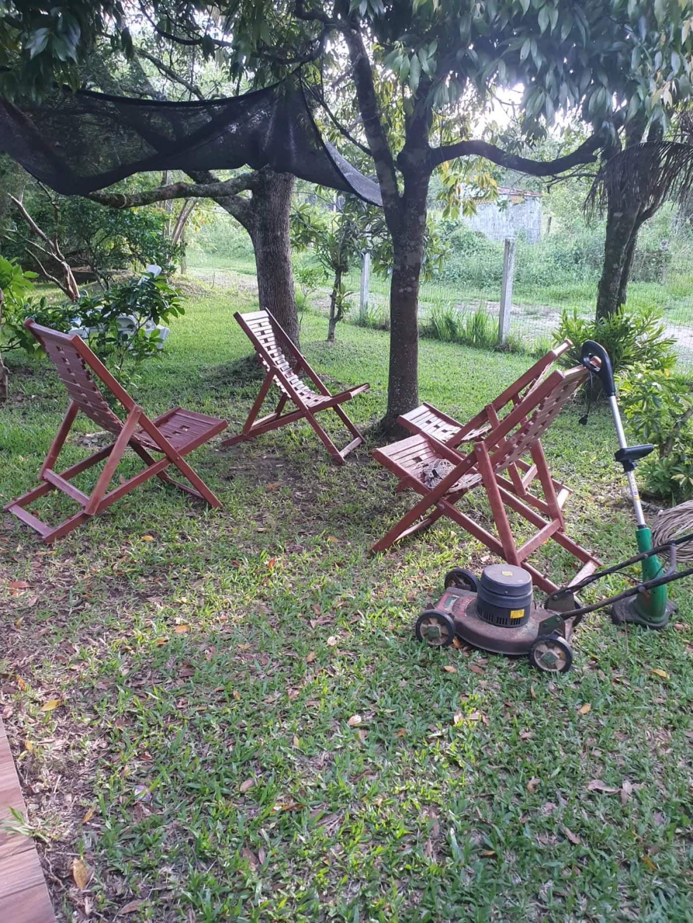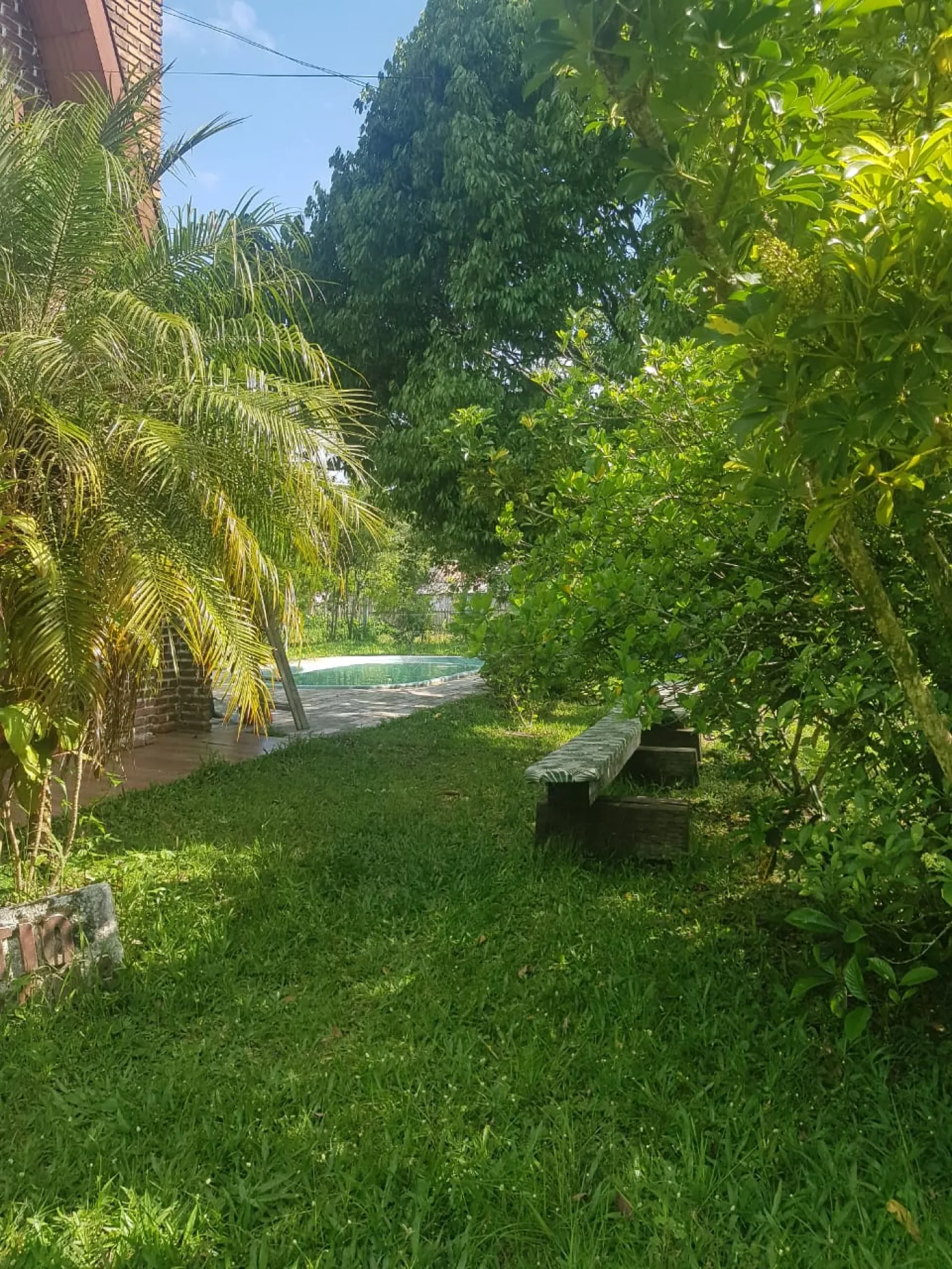 Pátio arborizado com diversas árvores frutíferas em produção.