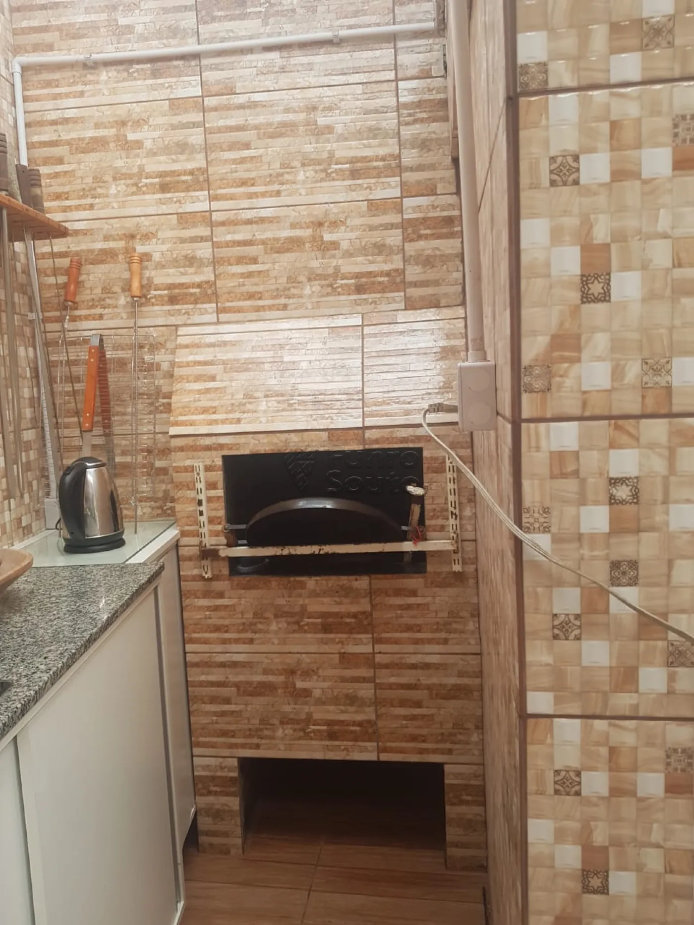 Cozinha Funcional: Inclui churrasqueira e fogão a lenha interno.