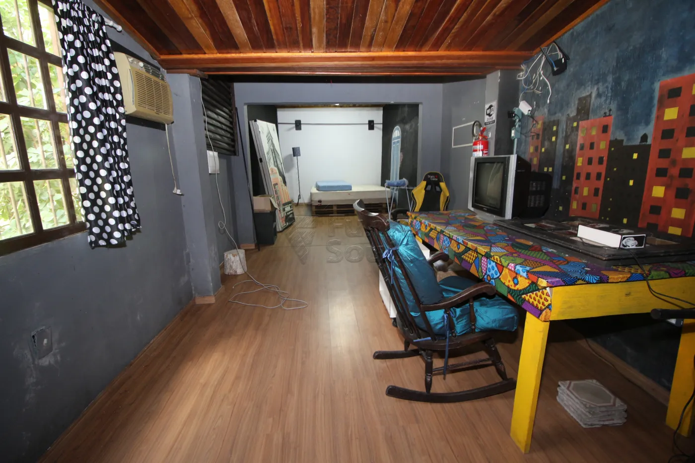 - 2 Dormitórios Aconchegantes: Um quarto suíte amplo com piso laminado, equipado com cama, bancada de trabalho, cadeira gamer, televisão e ar-condicionado, proporcionando um ambiente perfeito para descanso e entretenimento. O segundo quarto, também amplo com piso laminado, conta com cama, armário, ventilador de teto e janela grande, garantindo um ambiente bem iluminado e agradável.