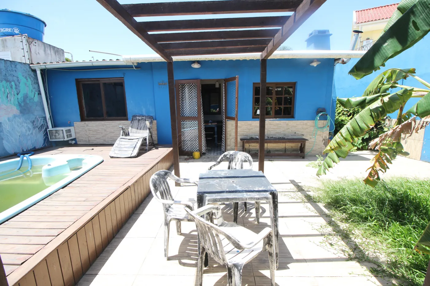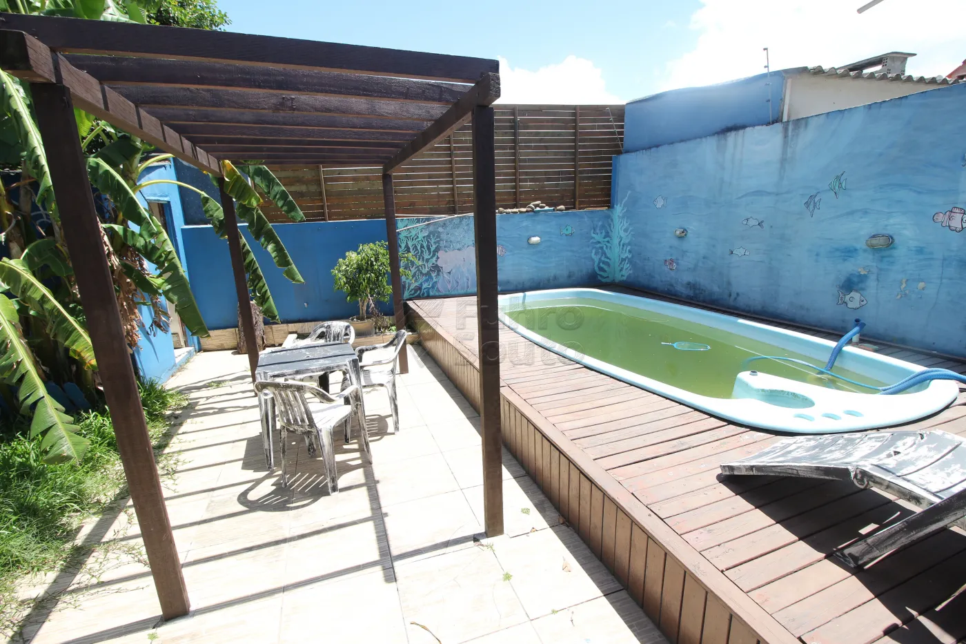- Lazer Externo: Área de lazer com pergolado, piscina e deck de madeira, ideal para relaxar e se divertir nos dias de sol.