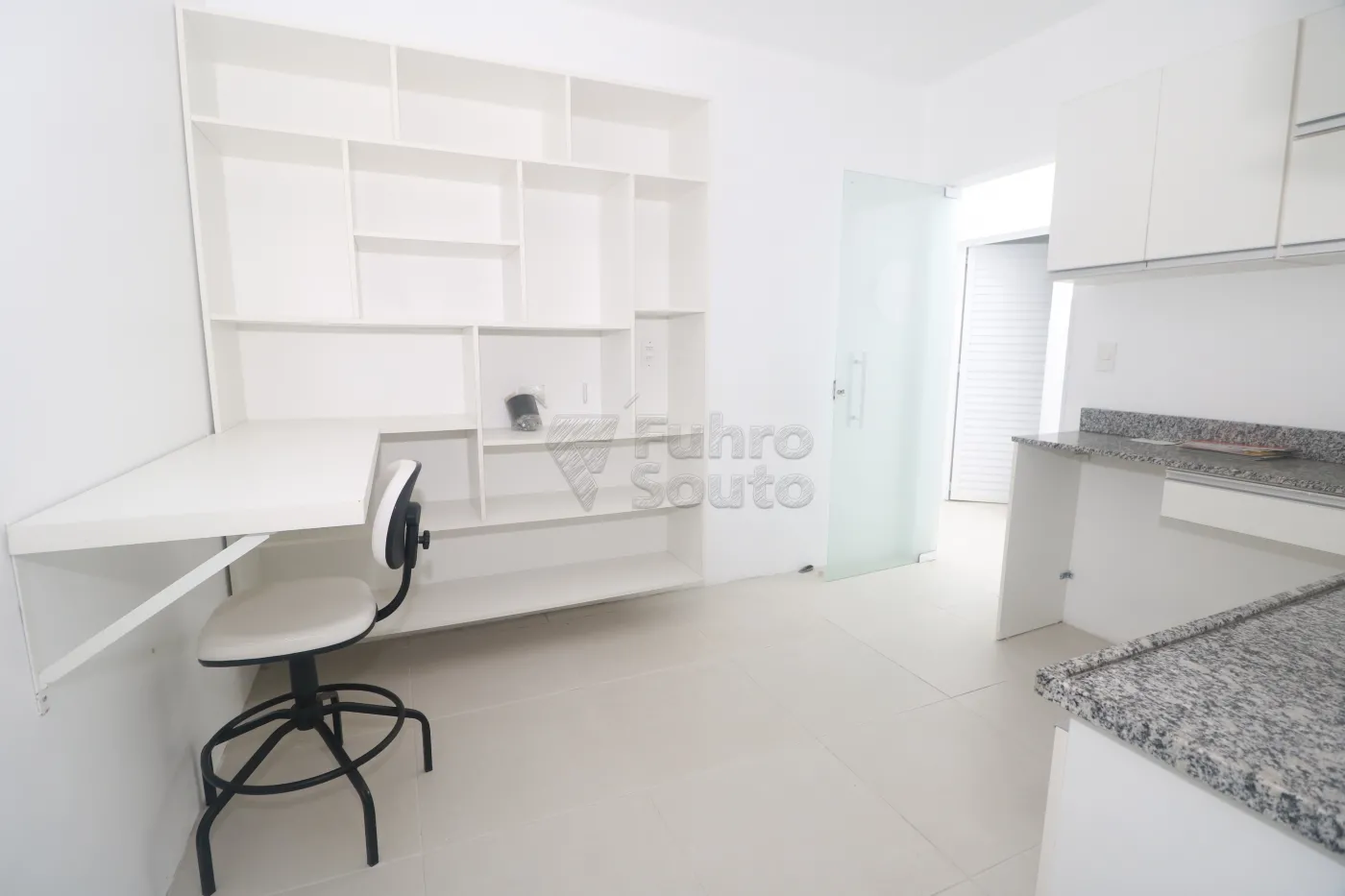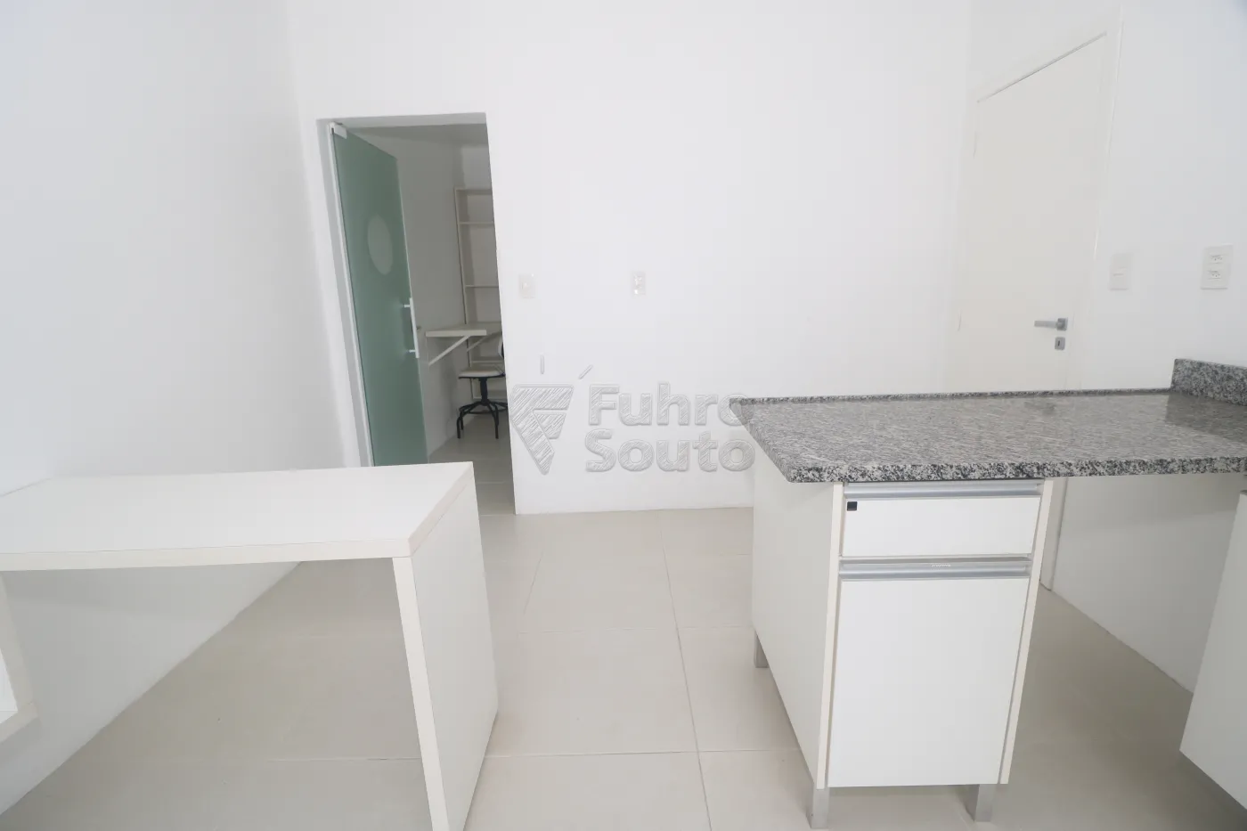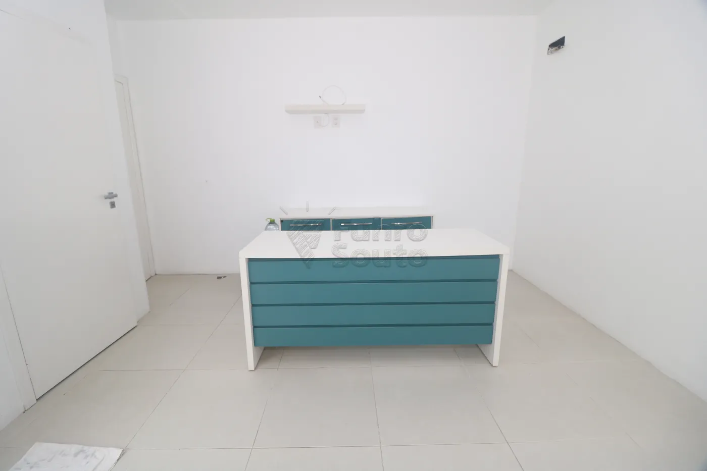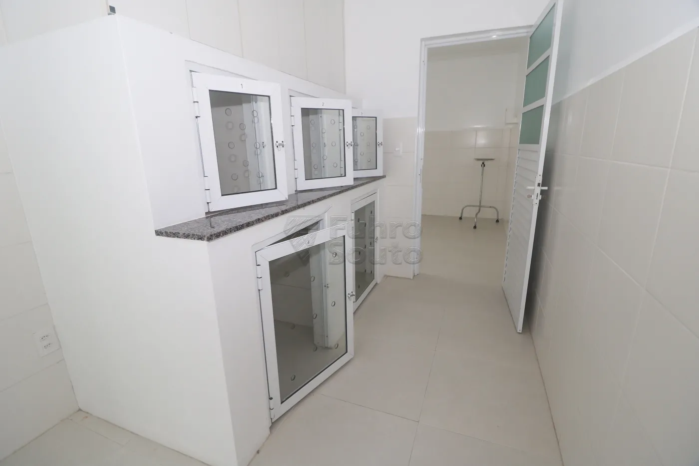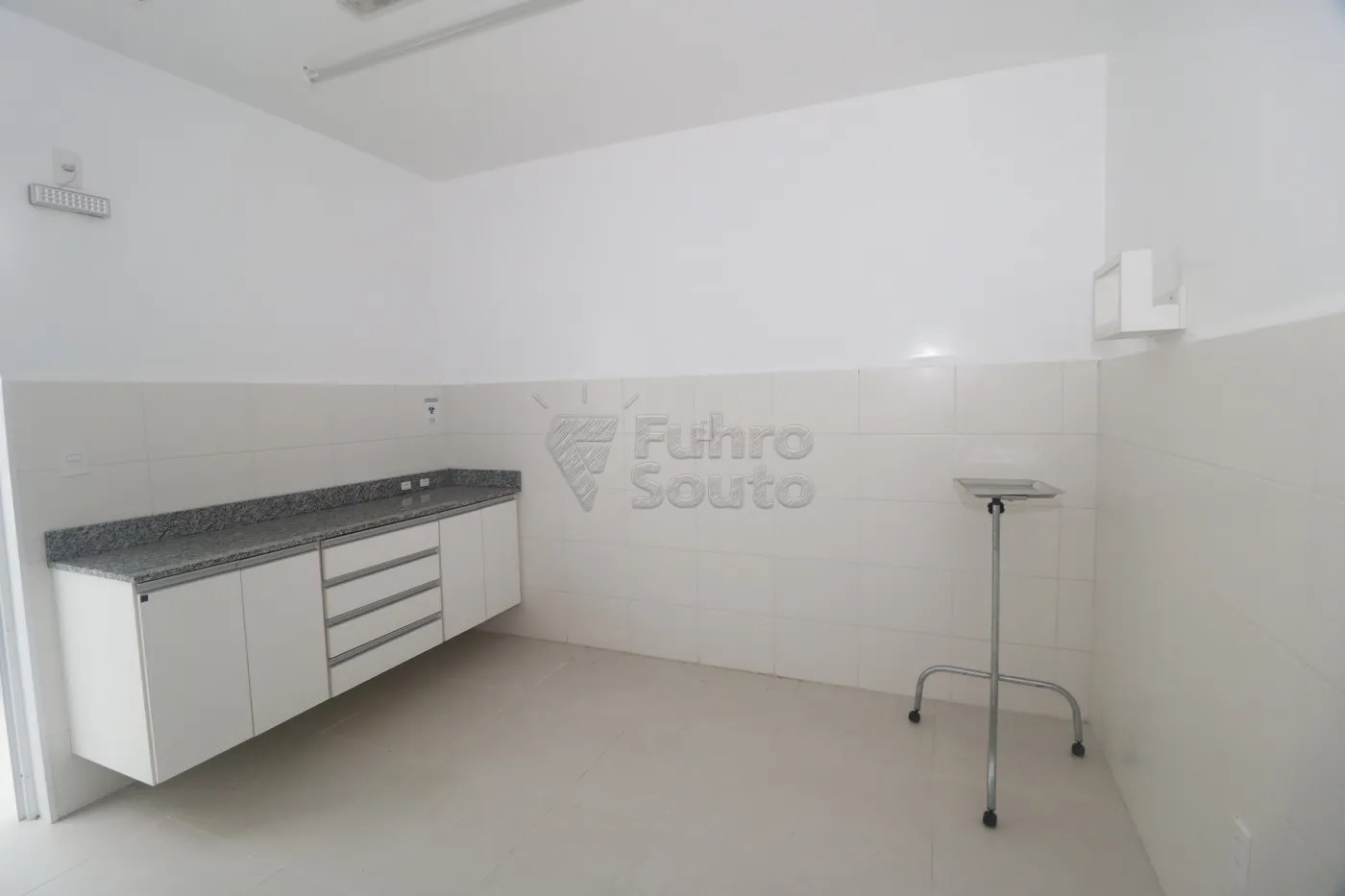 Sala 1 - equipada com armários com gavetas e bancada em granito, revestimento em epóxi e espera para split