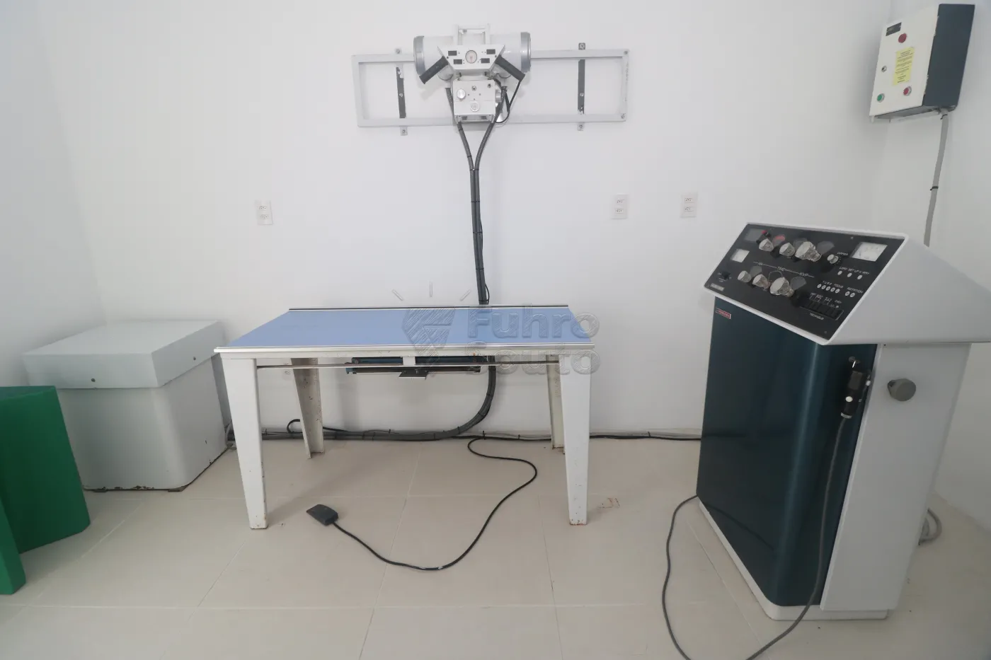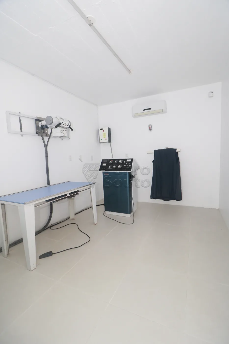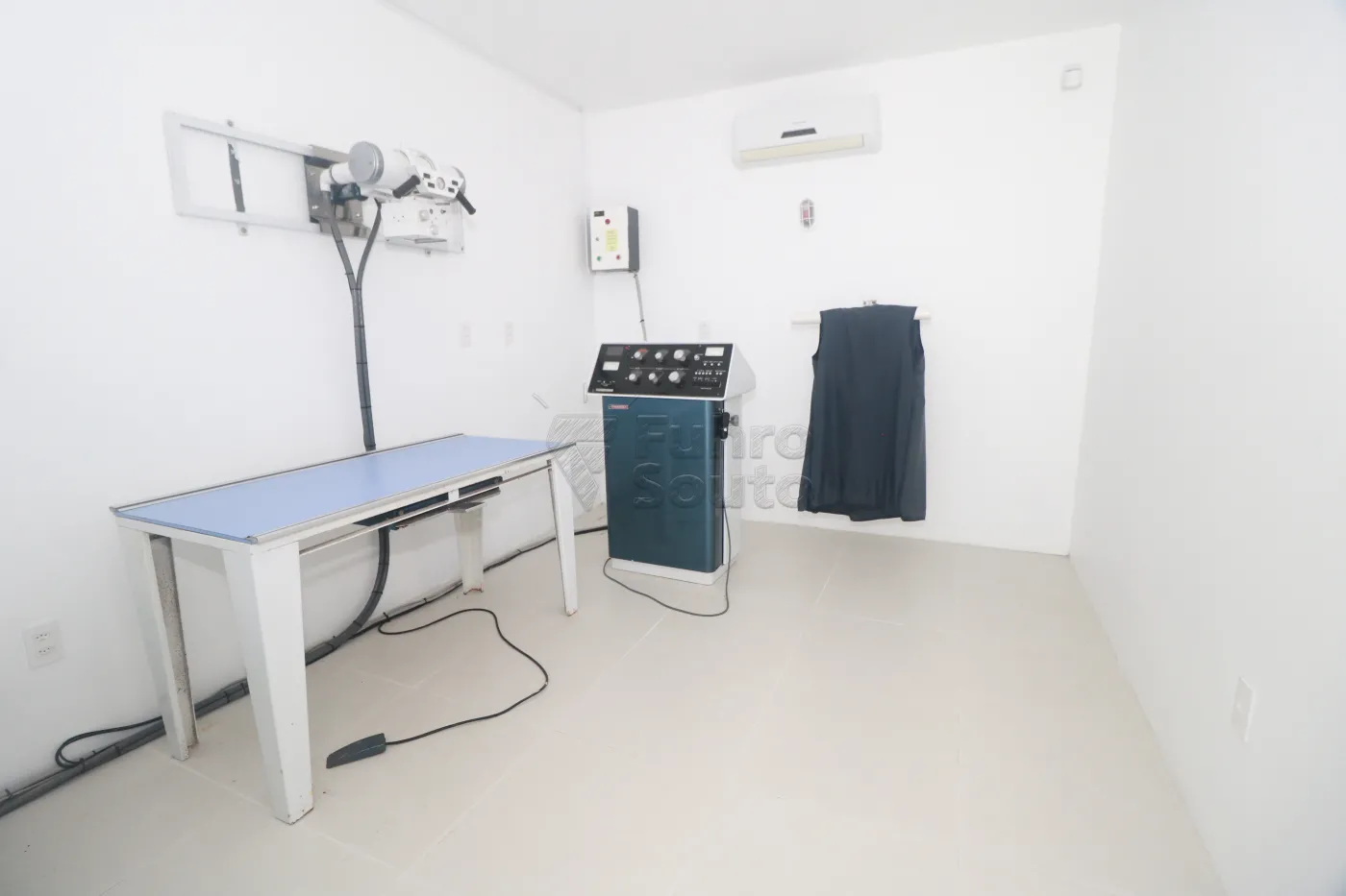 Sala de raio X - construída com estrutura especial, instalação elétrica trifásica independente e porta com lençol de chumbo, além de espera para split
