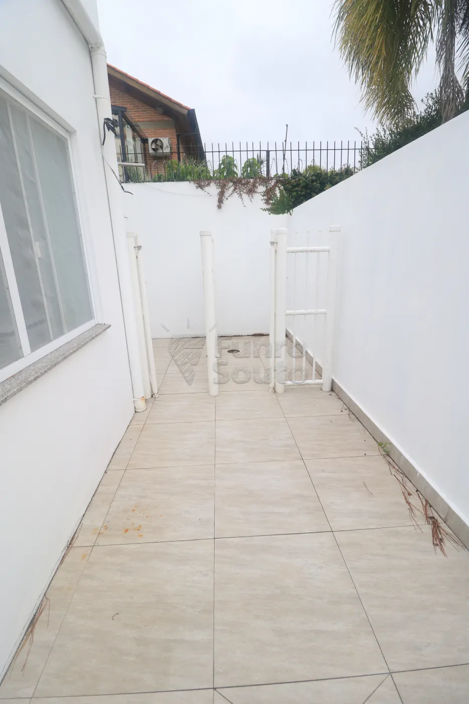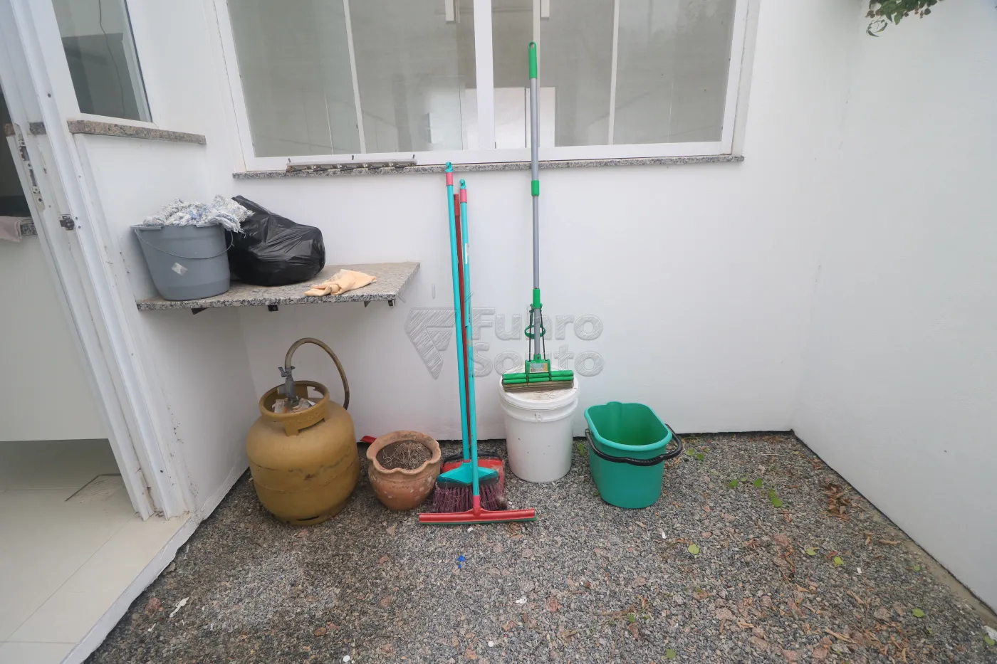 Área externa coberta - junto à copa/lavanderia, coberta com vidro laminado, espera para P13, expurgo e espera para aquecedor de passagem Komeco