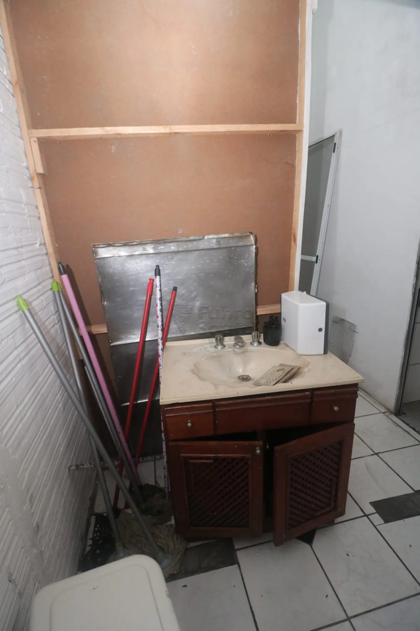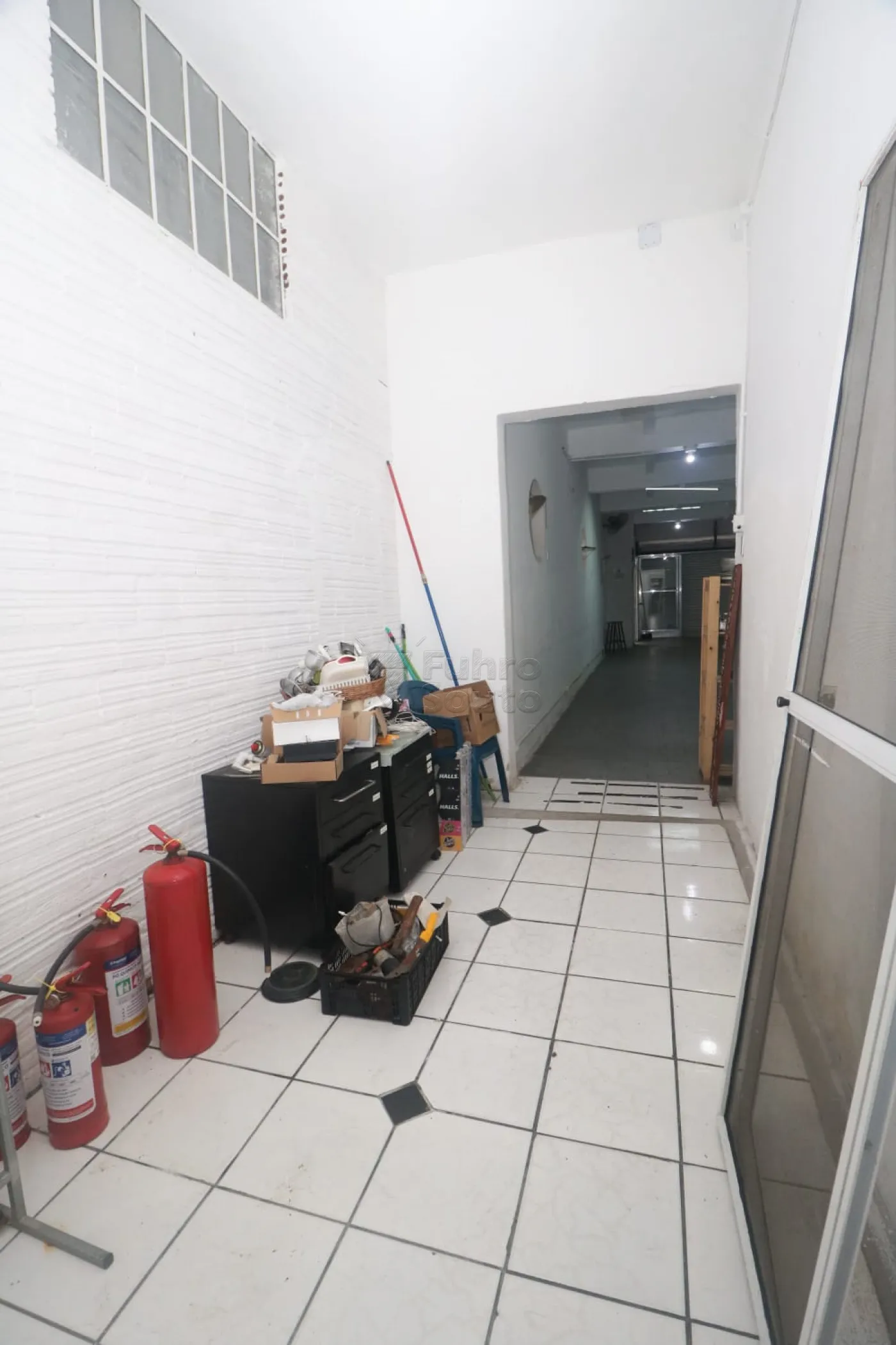 Área de Serviço/Depósito: Corredor lateral para estoque, organização e fácil acesso aos extintores de incêndio.
