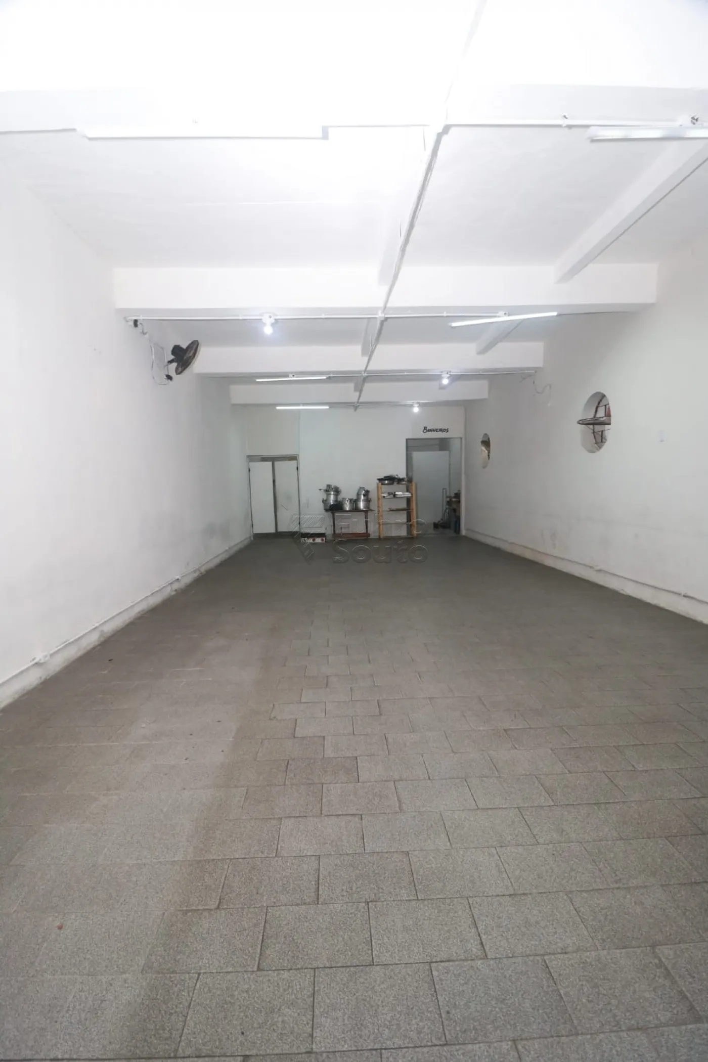 Espaço Versátil: Salão amplo com piso cerâmico, ideal para diversas configurações de layout.
