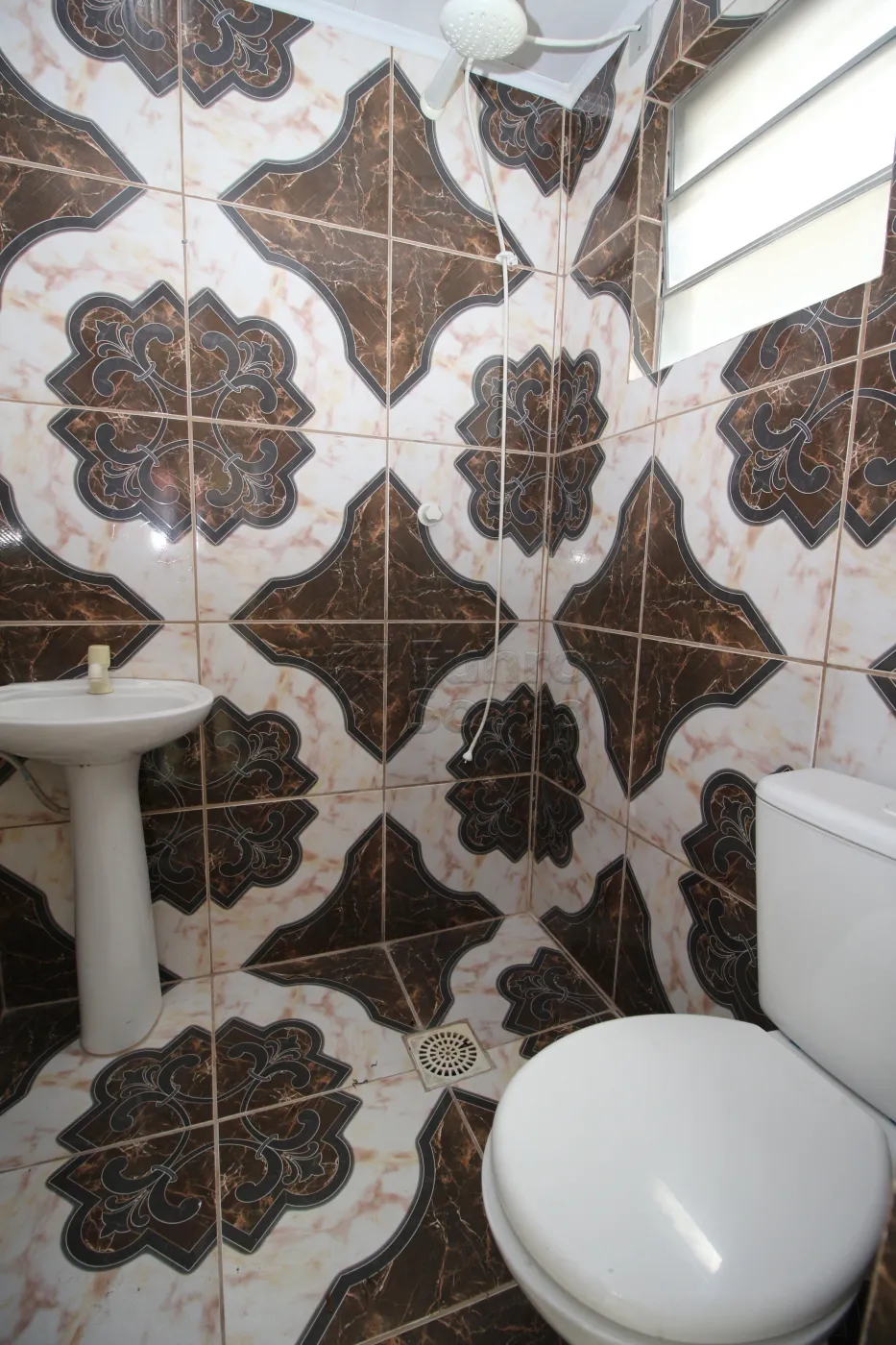 Banheiro funcional e bem conservado.