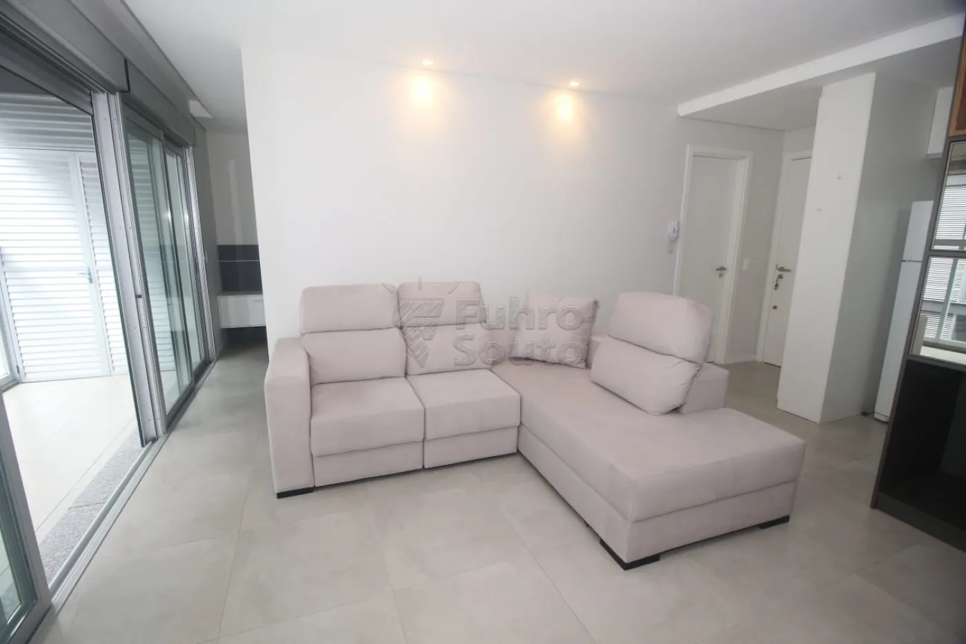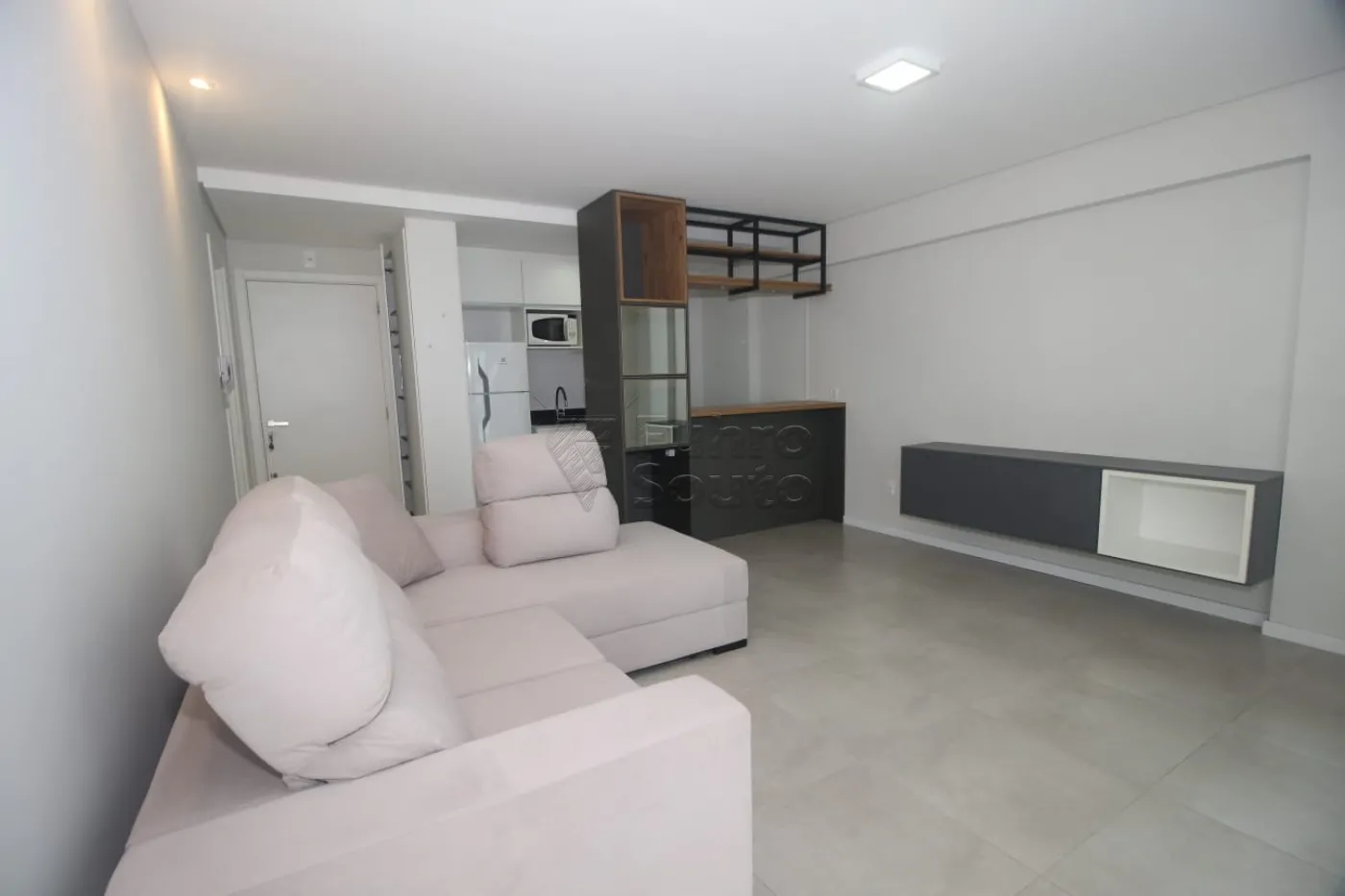 - Sala Integrada: Ambiente acolhedor com sofá e acesso direto à sacada, perfeito para relaxar e aproveitar momentos de descanso.