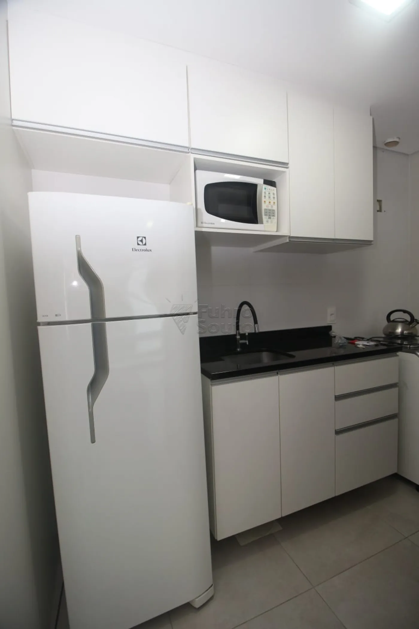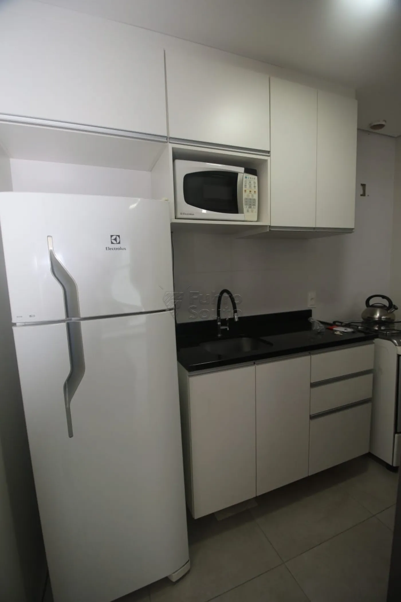 - Cozinha Equipada: Com balcão de pia, armários, geladeira, fogão e micro-ondas, proporcionando praticidade completa no preparo das refeições.