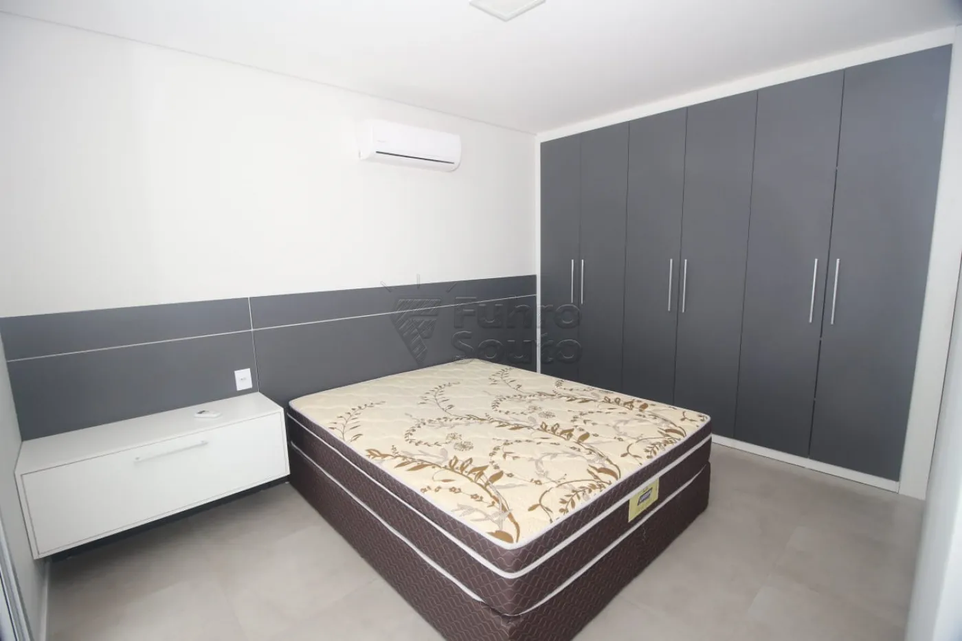 - 1 Dormitório: Espaço confortável com cama box de casal, guarda-roupa planejado e ar-condicionado, garantindo noites tranquilas e organizadas.