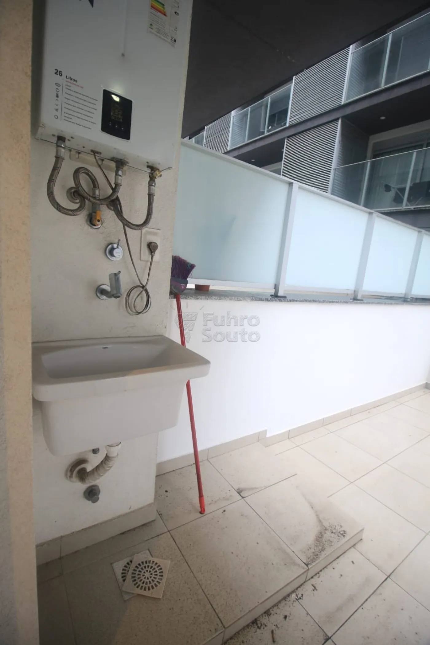 Sala e cozinha integrada com ambiente amplo e arejado, terraço privativo, desfrute de momentos de relaxamento e lazer em seu próprio espaço ao ar livre, com Junker instalado para aquecimento de água.