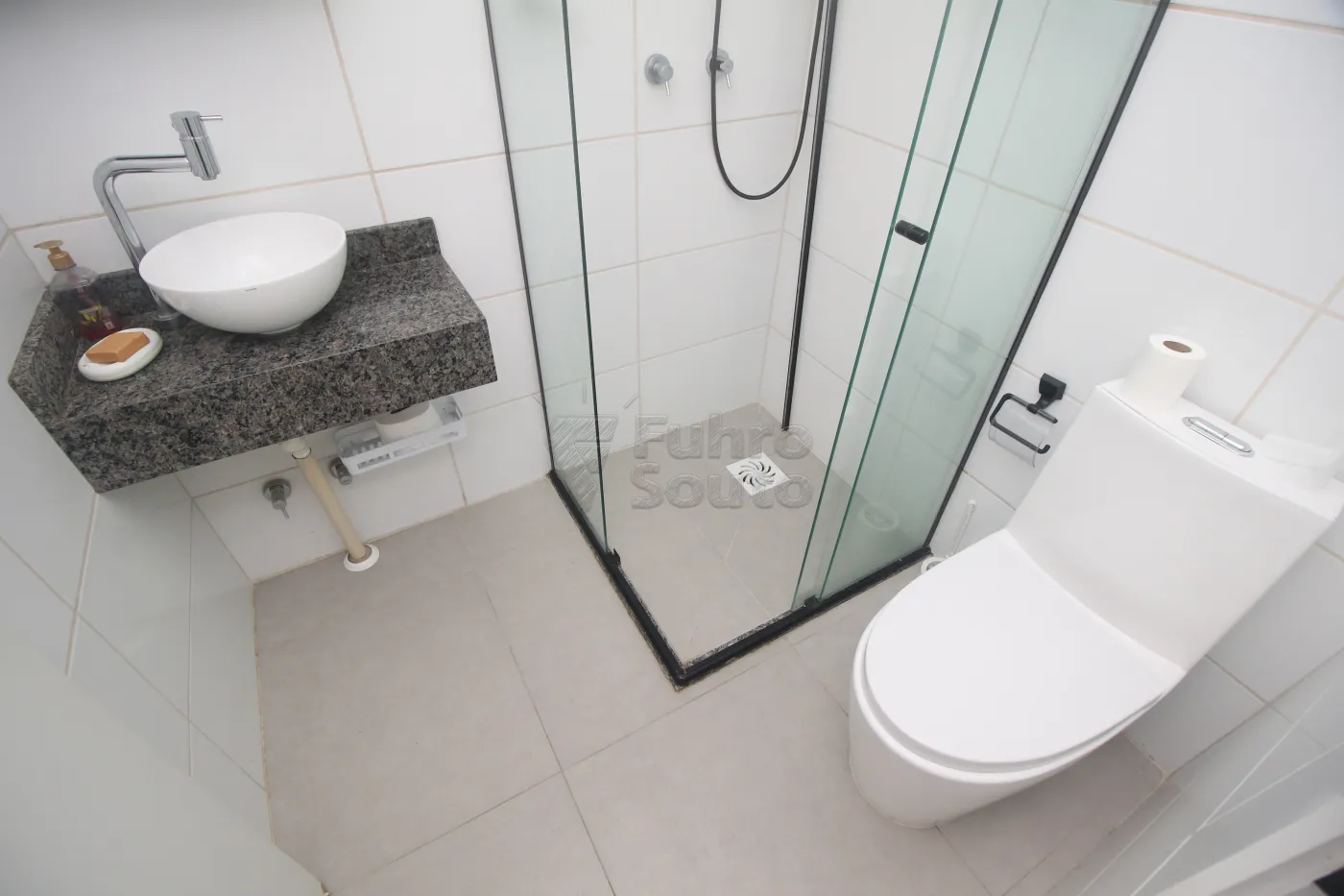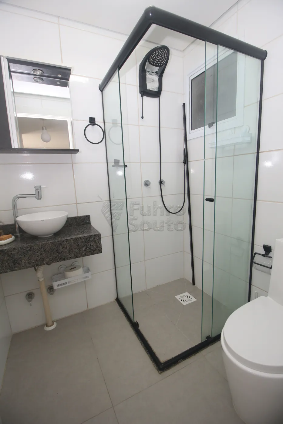 Banheiro Social com box em vidro.