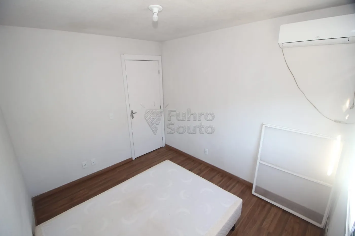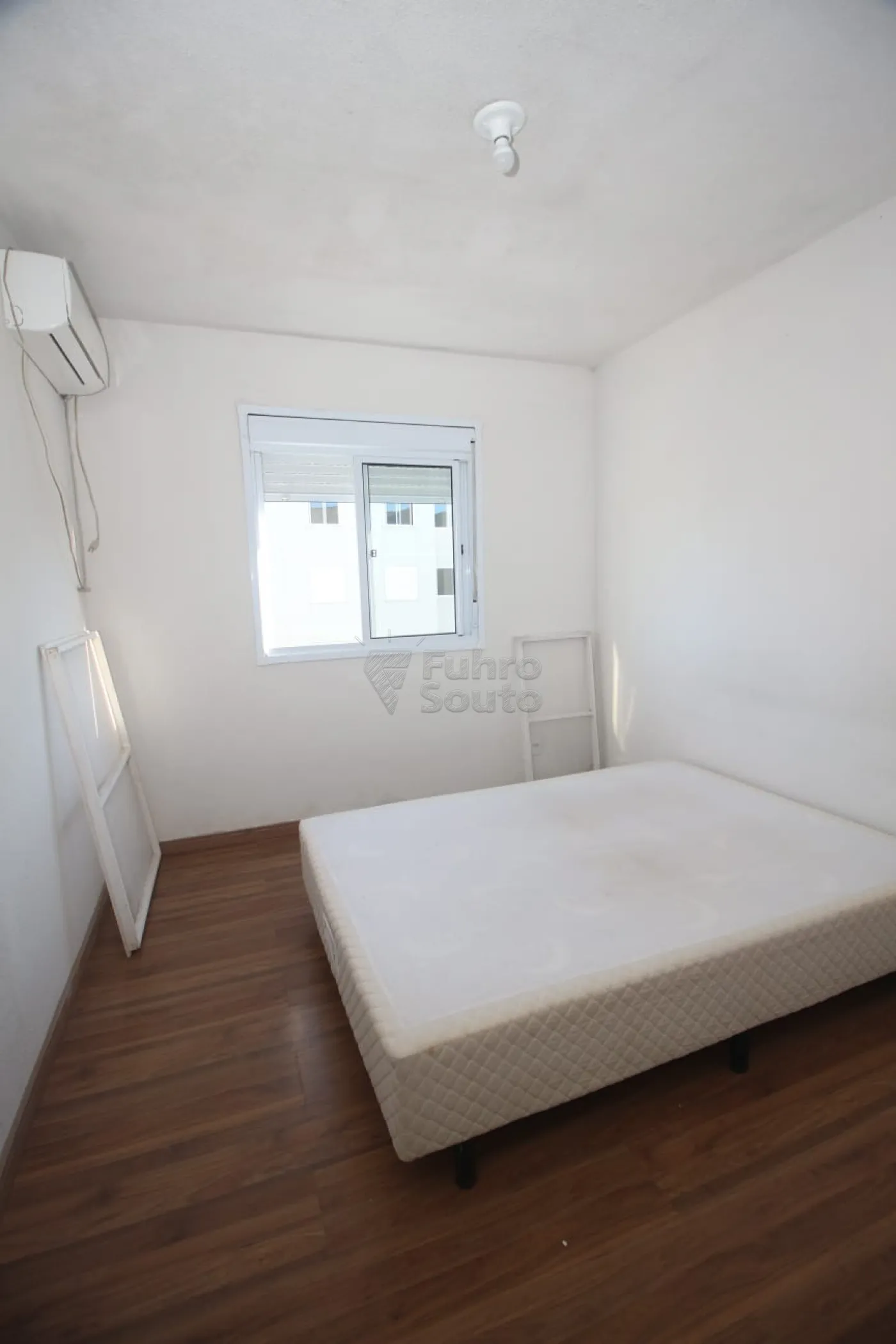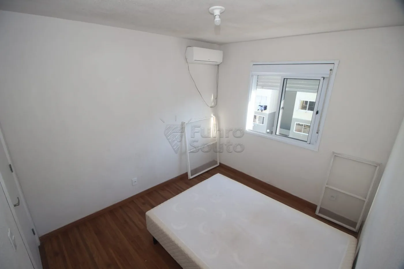 Um dos quartos possui roupeiro, ar-condicionado e base para cama box.