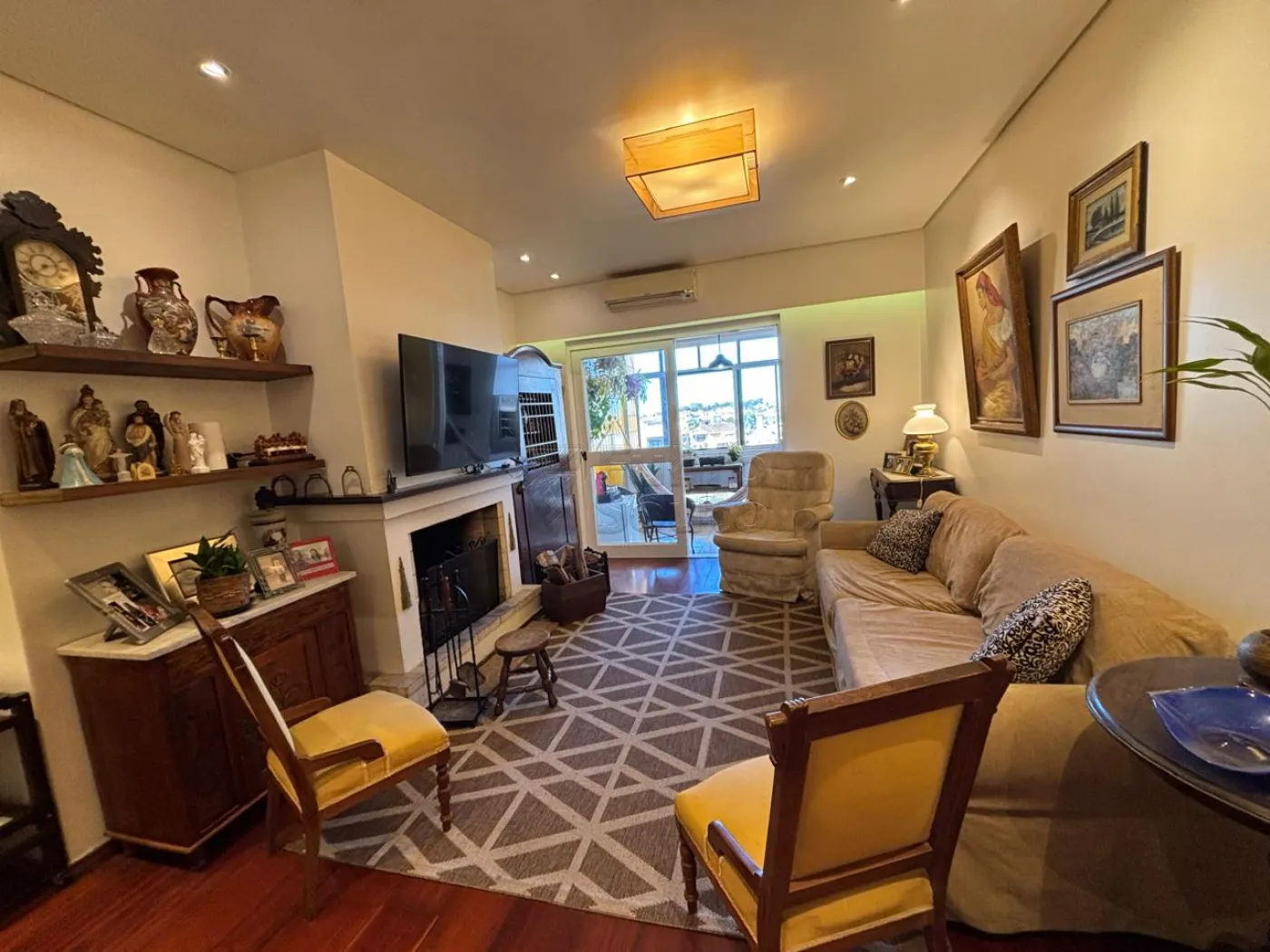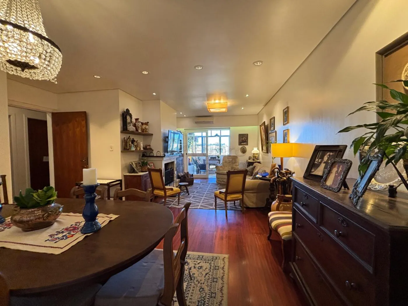 Conta com ampla sala de estar e jantar, lareira, churrasqueira na sacada e duas vagas de garagem.