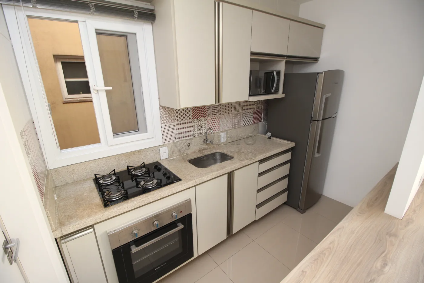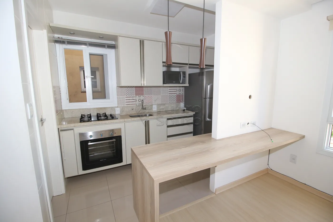 - Cozinha Integrada: Cozinha integrada à sala, equipada com balcão de pia, armários, microondas, geladeira, cooktop e forno embutido, proporcionando praticidade e eficiência no dia a dia.