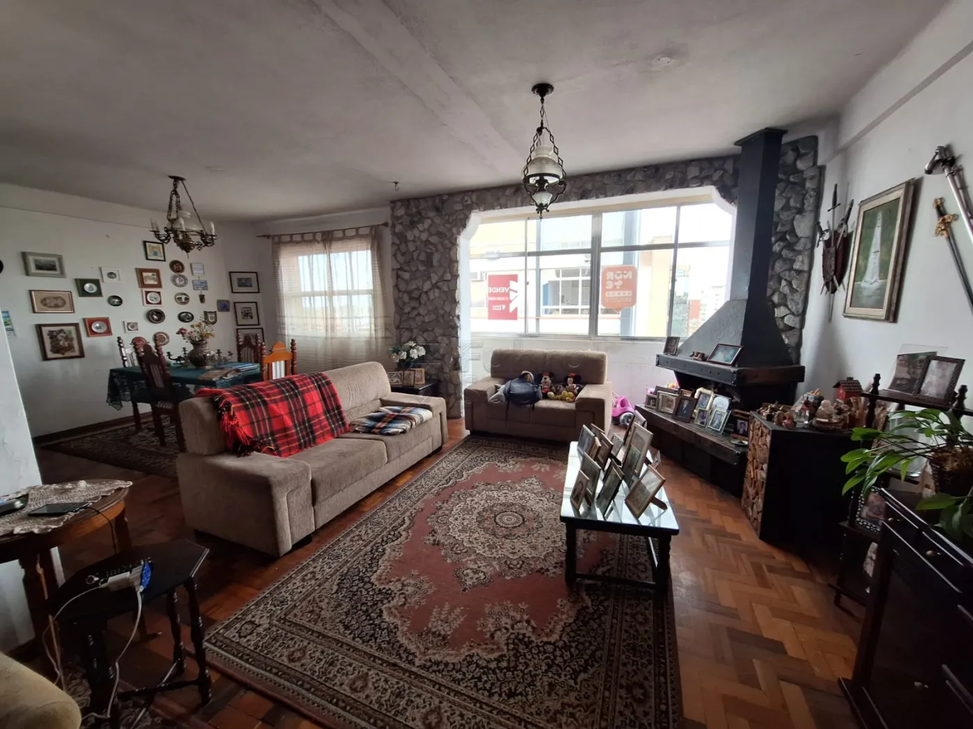 Área Social: Sala ampla com lareira, perfeita para reunir família e amigos, integrando estar e jantar.