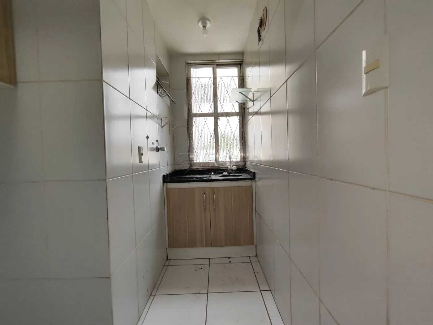 Cozinha com armários, pia e bom espaço de circulação.