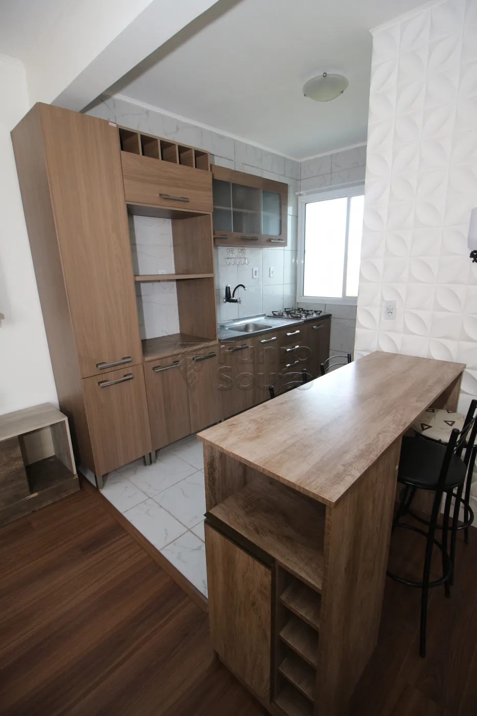 Cozinha Conjugada: Integrada à sala de estar, a cozinha é prática e funcional, equipada com balcão de pia, cooktop e bancada, oferecendo tudo o que é necessário para preparar refeições deliciosas.