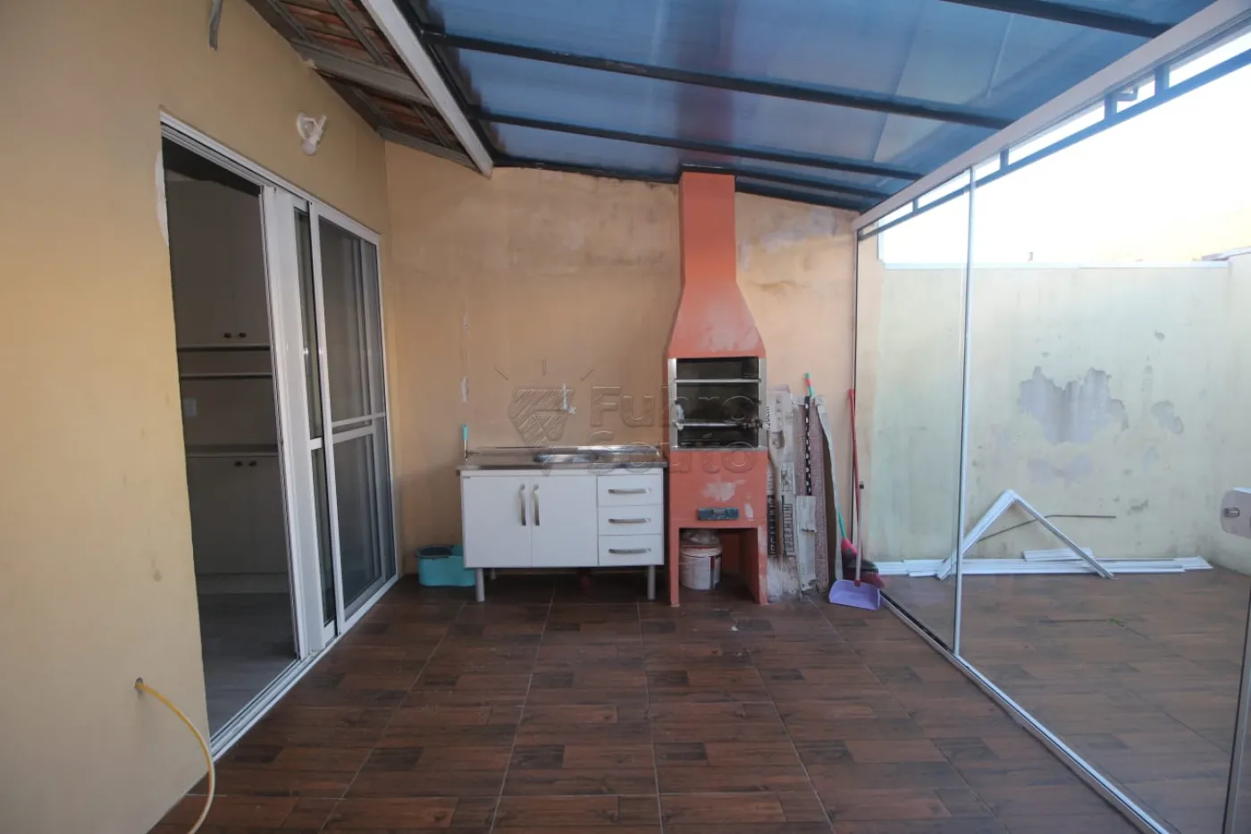 Churrasqueira com pia auxiliar.