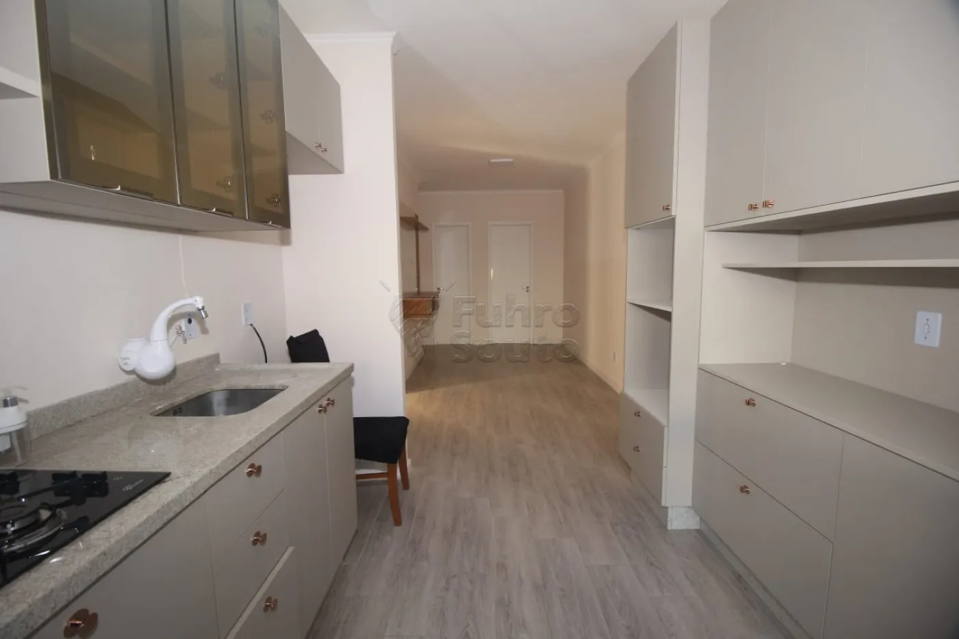 Balcão de pia com cooktop embutido, oferecendo praticidade para o preparo das refeições.