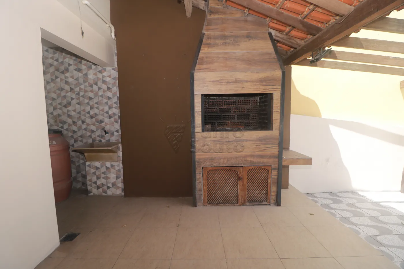 Terraço com churrasqueira e varanda, espaço agradável para momentos de lazer.